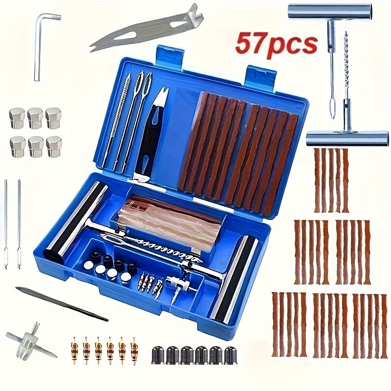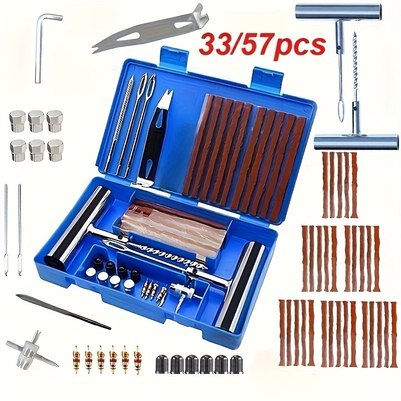 • Integrated Solution for Every Vehicle: Choose from our comprehensive kits (33 or 57 pieces) that include all the necessary tools to repair tire punctures in your car, van, motorcycle, or even bicycle. Be prepared for all scenarios!
