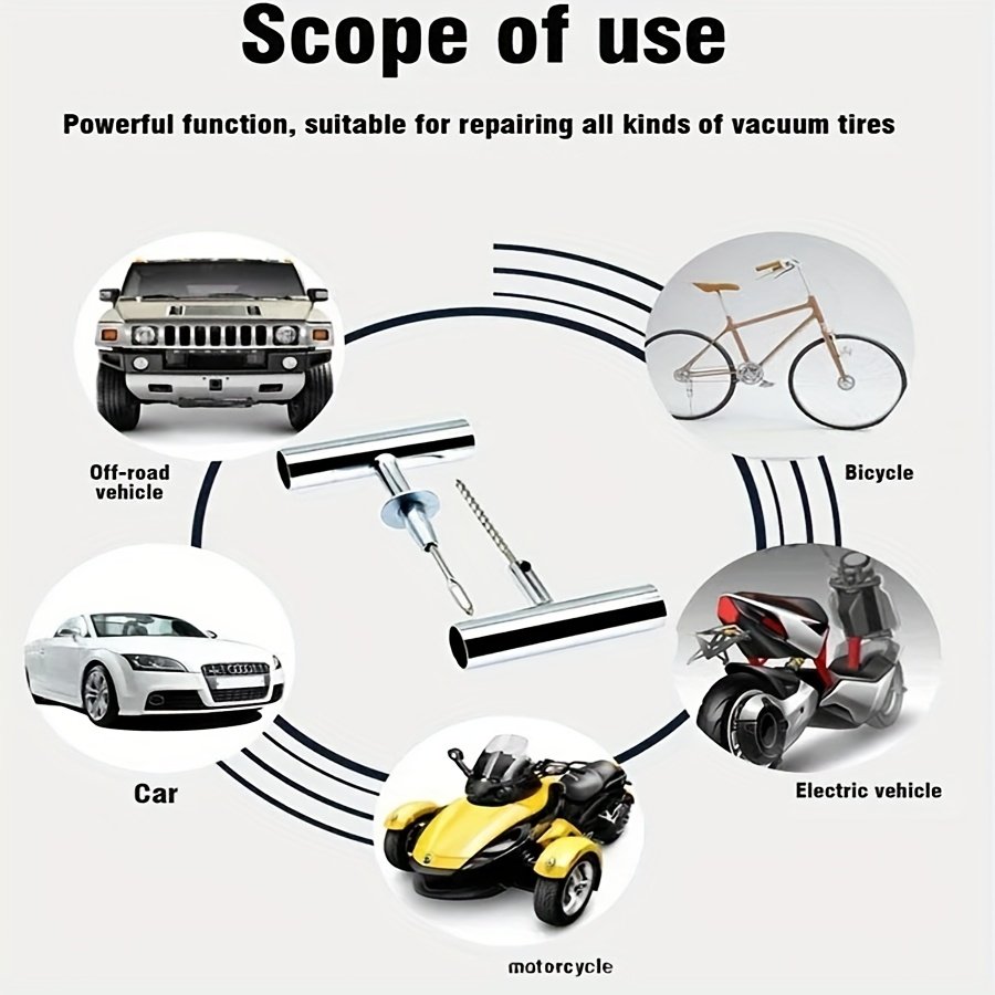 • Ideal for Tubeless Tires: This kit is specifically designed to handle modern tubeless tires, making the repair process easy and effective for quickly restoring tire pressure.