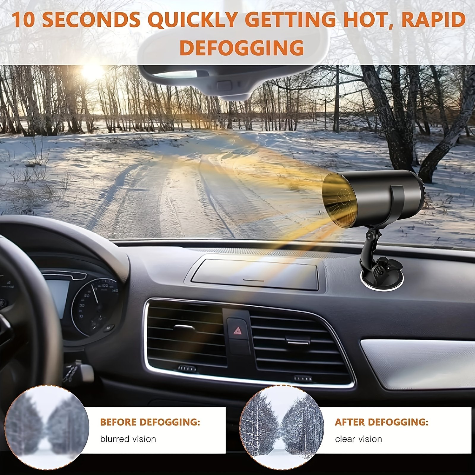 - Rapid Defrosting & Heating: Say goodbye to icy fog on your windshield! This device provides super-fast heating to remove fog and ensure clear, safe visibility in seconds.