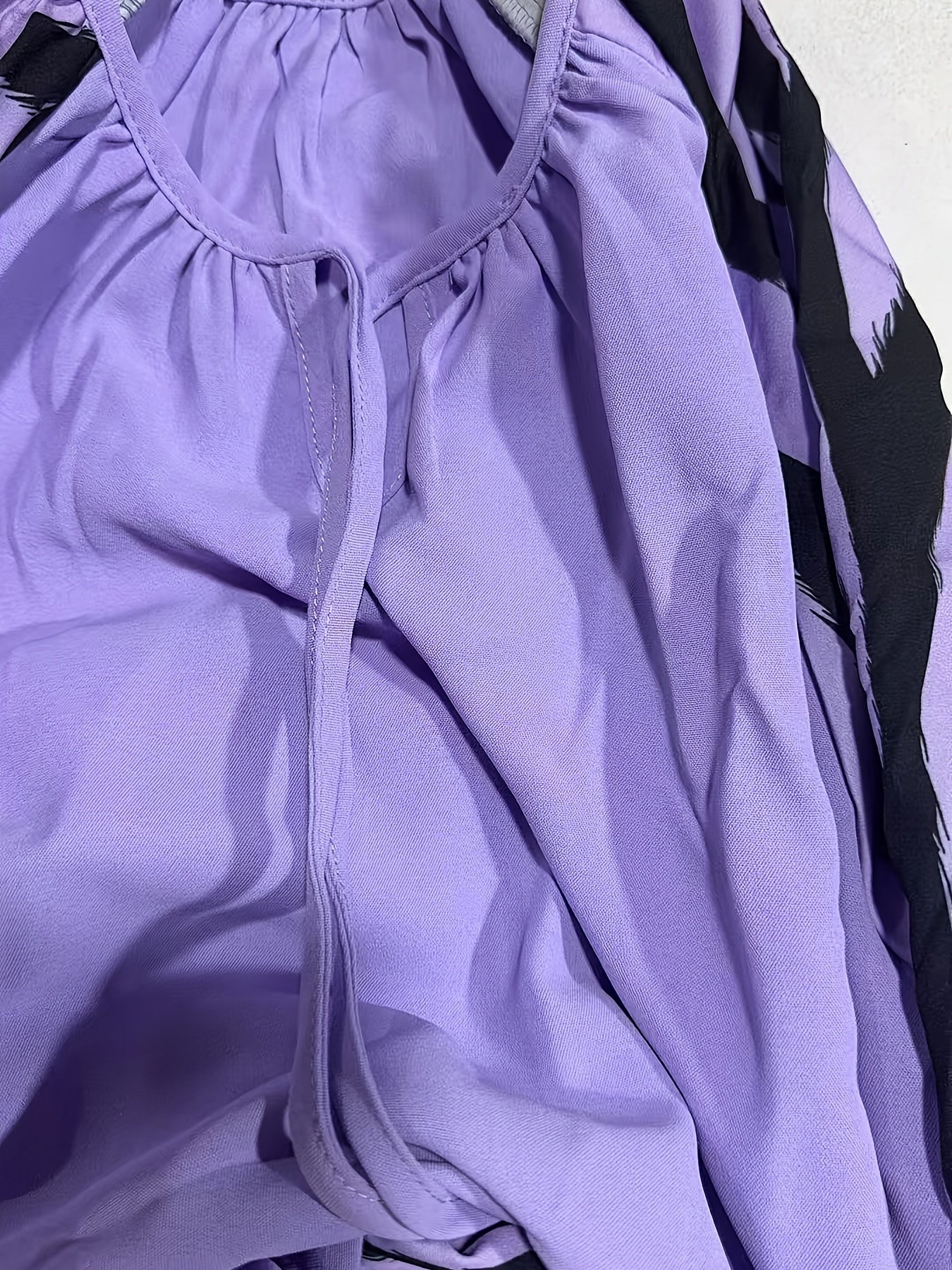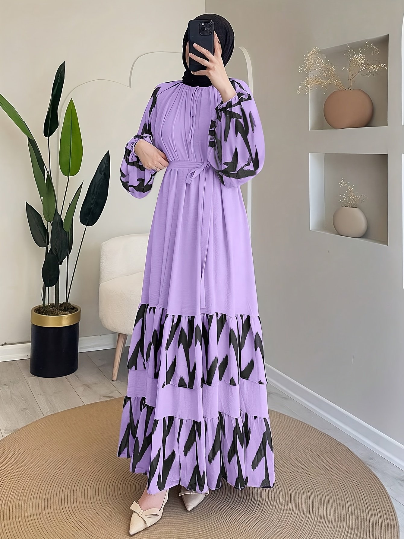 - Unique and Attractive Design: The abaya features a flowing A-line cut that offers comfortable movement and a graceful silhouette. The V-neck design adds a charming feminine touch, and it’s adorned with modern geometric prints that highlight its beauty.
