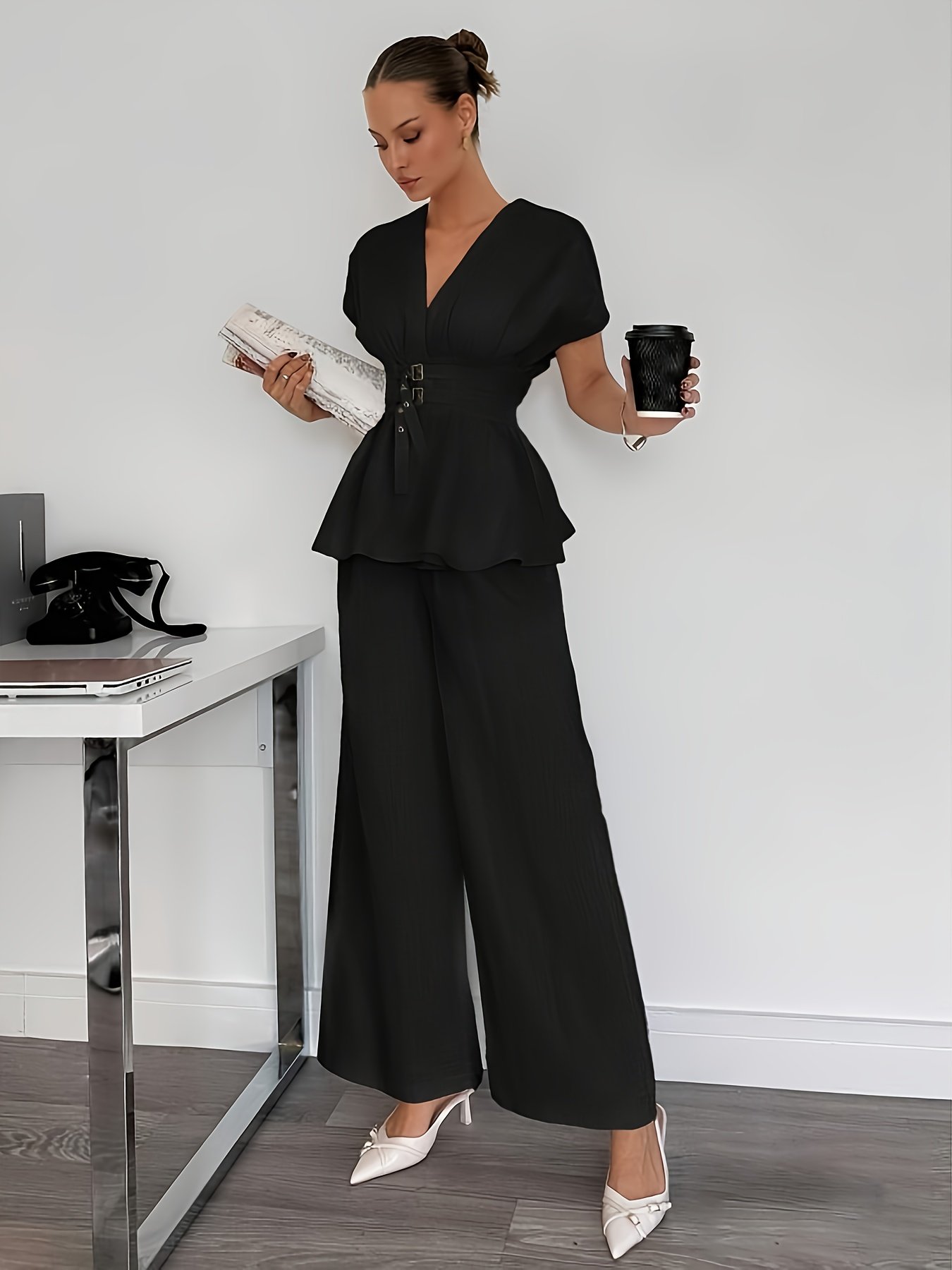 Integrated Elegance: The Modern Black Two-Piece Set for the Sophisticated Woman