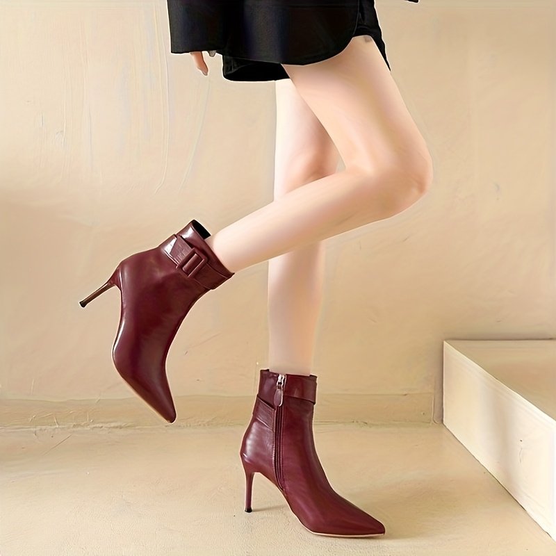 Be the first to review “Irresistible Allure: Pointed Shimmering Burgundy High-Heel Boots”