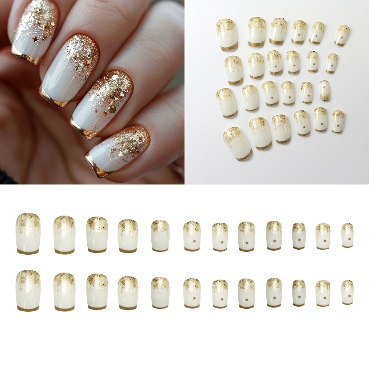 Do you dream of enchanting nails that steal the spotlight with a single touch? Say goodbye to long salon visits and the struggles of traditional nail applications! We present the perfect solution for a modern, dazzling look in seconds: the Square Strobe Nail set, specially designed to give you a unique golden sparkle that embodies luxury and sophistication. Let your fingertips glow with unforgettable beauty for every occasion, from lively parties to your daily meetings.