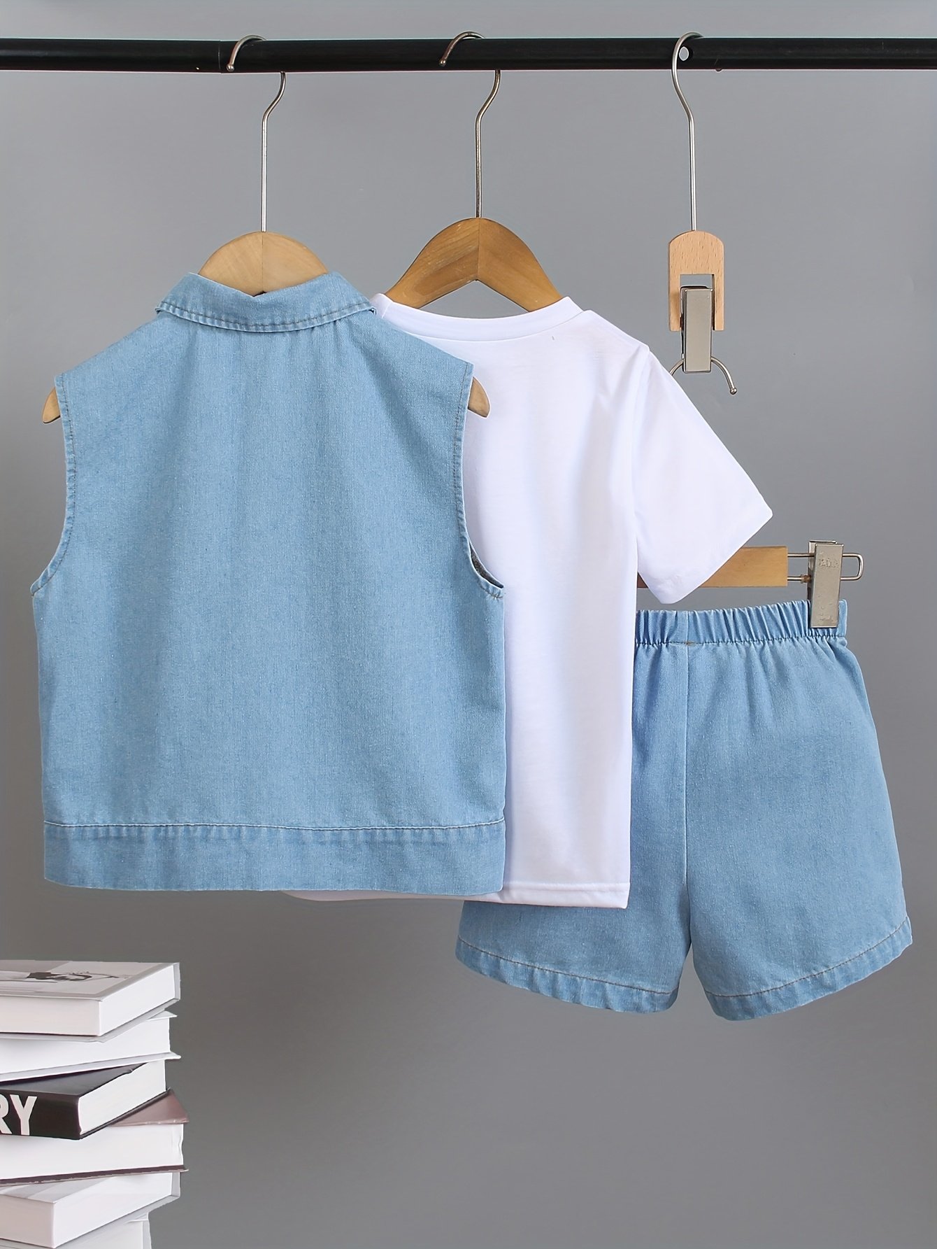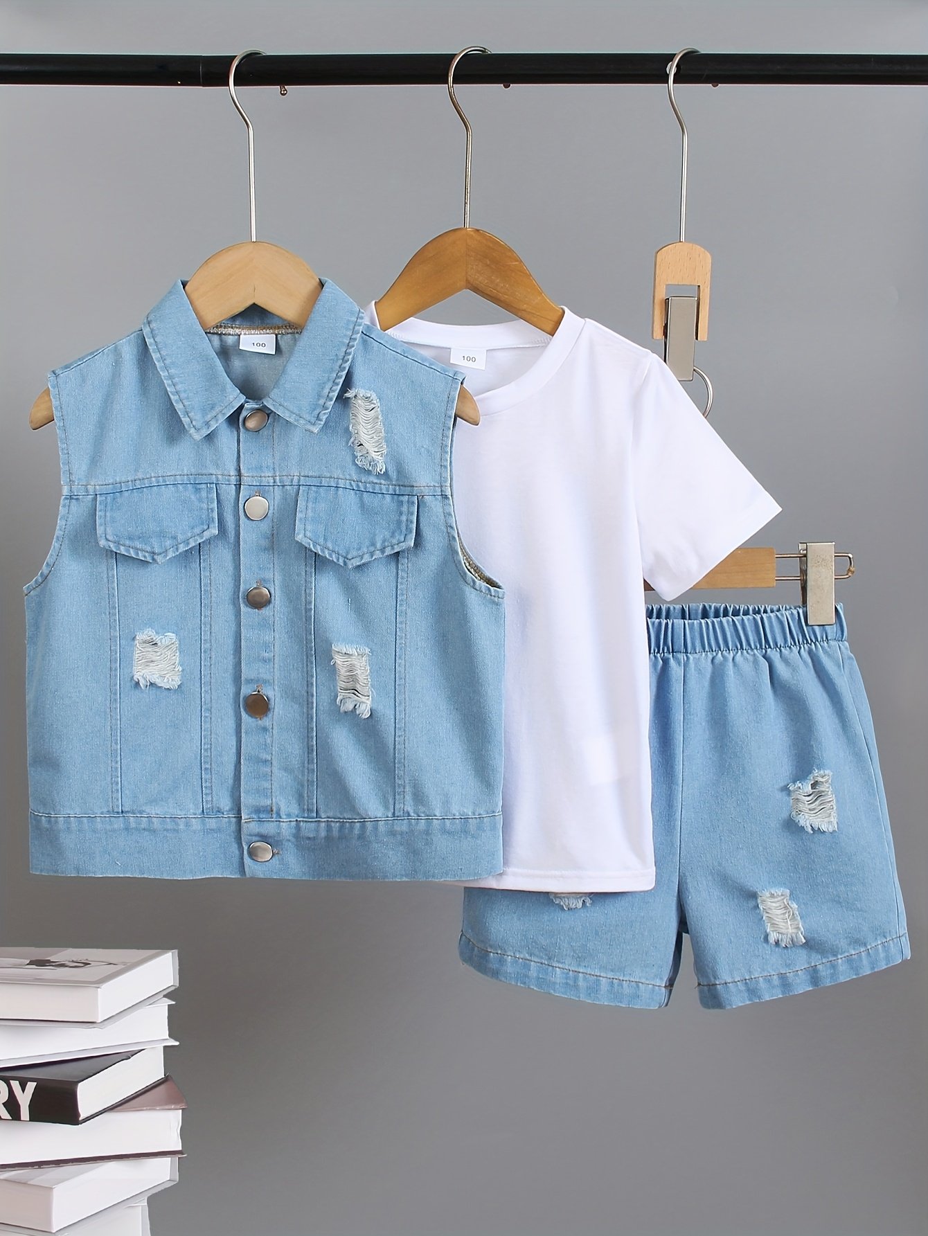 - Complete Three-Piece Set: Get a modern and coordinated look with ease! It includes a stylish denim jacket, a comfortable round-neck t-shirt, and trendy jeans, preparing your son for any occasion.
