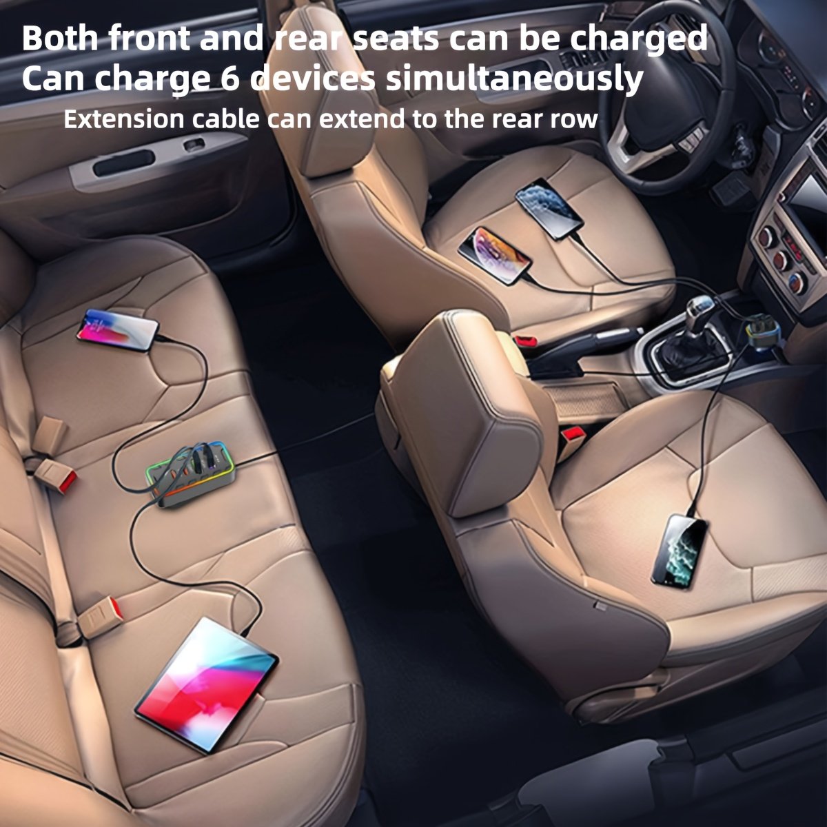 - Comprehensive Power Extension for Rear Seats: Charging is no longer limited to the front seats! With the long cable dedicated to the rear seats, all passengers, wherever they sit, can enjoy convenient and always-available charging power.