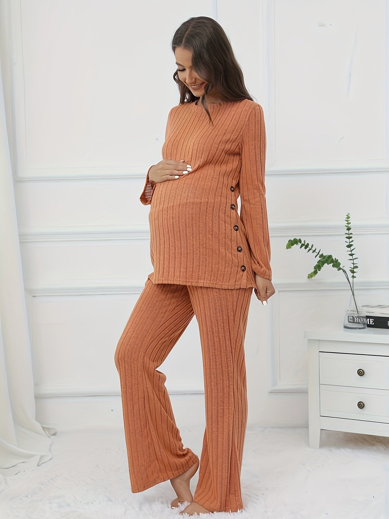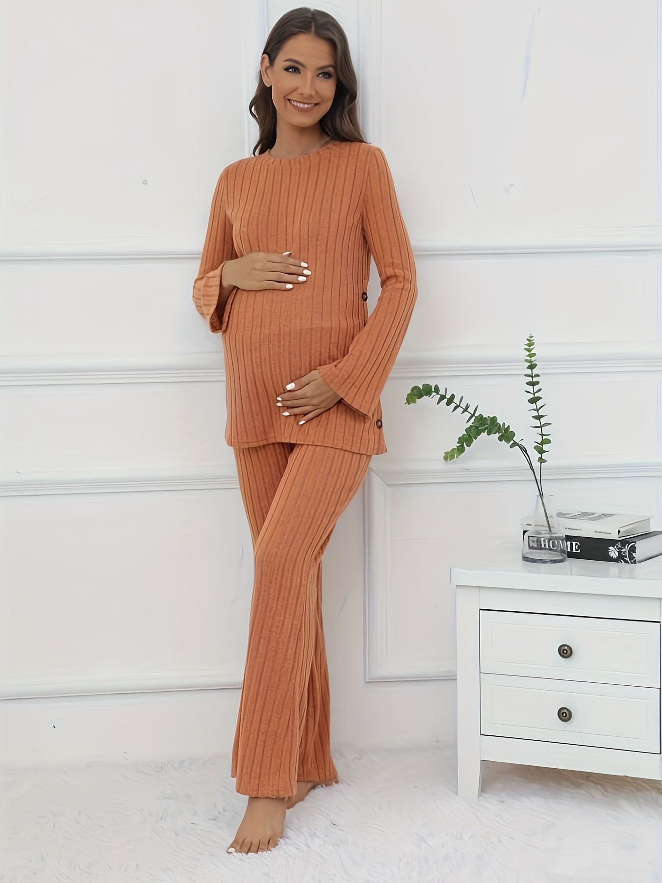 Welcome to a world of ultimate comfort and modern elegance designed specifically for you, future mom! We fully understand that pregnancy requires clothing that combines practicality with an attractive appearance, which is why we present to you the new maternity long pants set. It’s not just a set; it’s your perfect everyday companion, designed to gently embrace your changing body and give you the confidence and charm you deserve. Enjoy your days and nights with unparalleled comfort and style, and let our new set be the touch of elegance that completes the beauty of your motherhood.