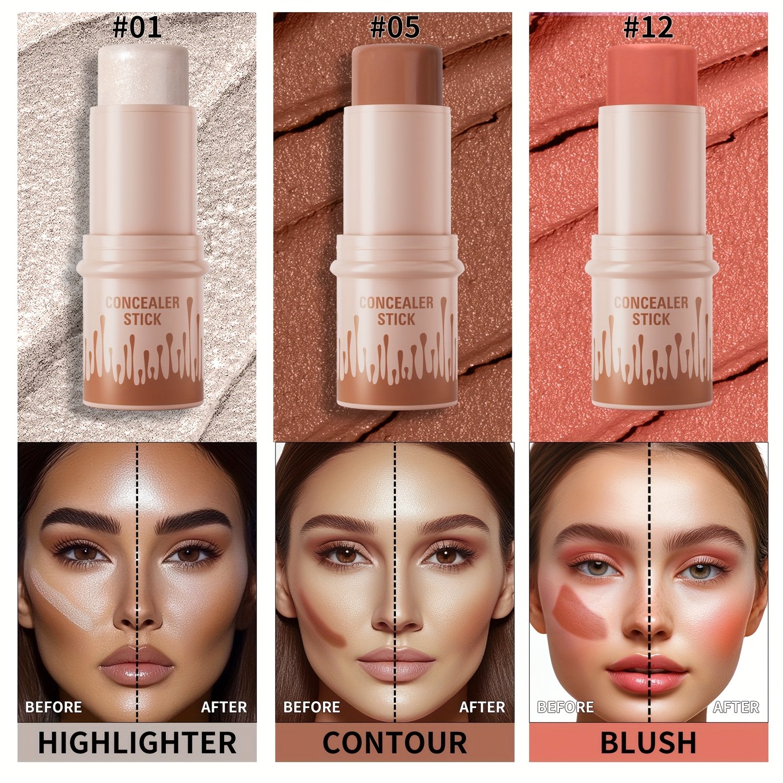 - Complete Contouring & Highlighting Kit: Includes a contouring pen to skillfully sculpt and define facial features, a blush pen to add a vibrant and natural rosy touch, and a highlighter pen for a dazzling, charming glow.
