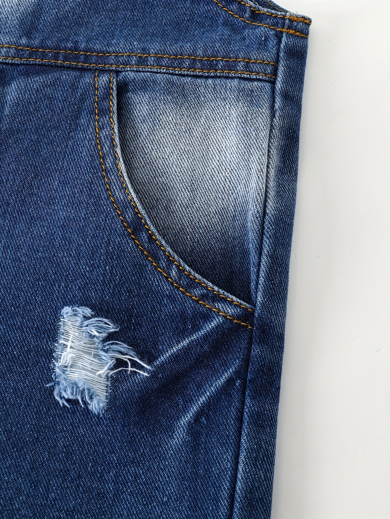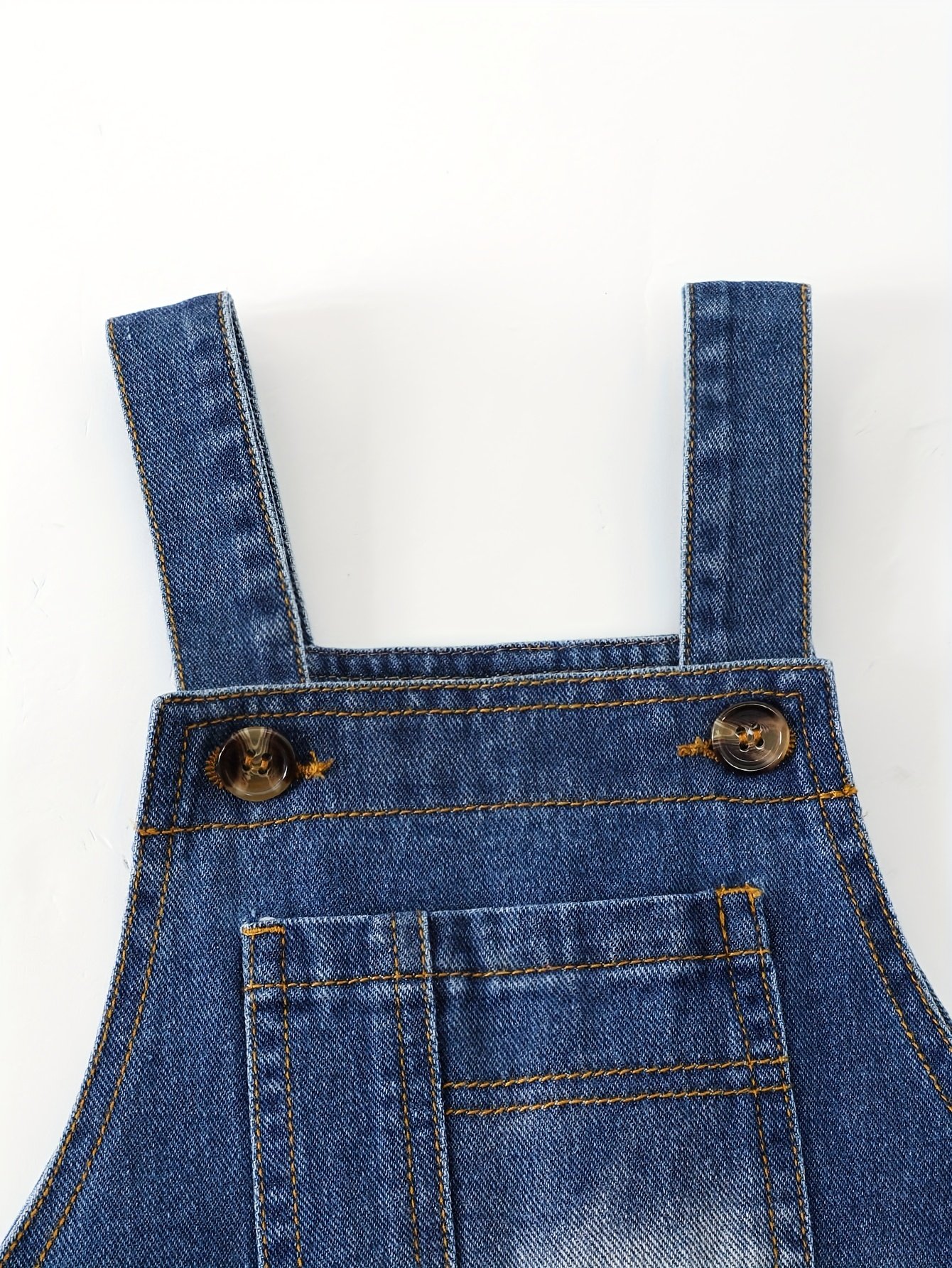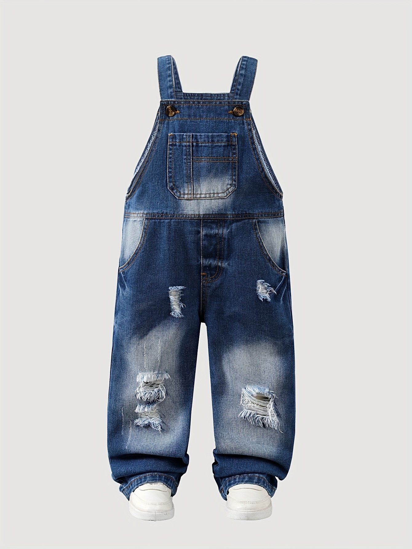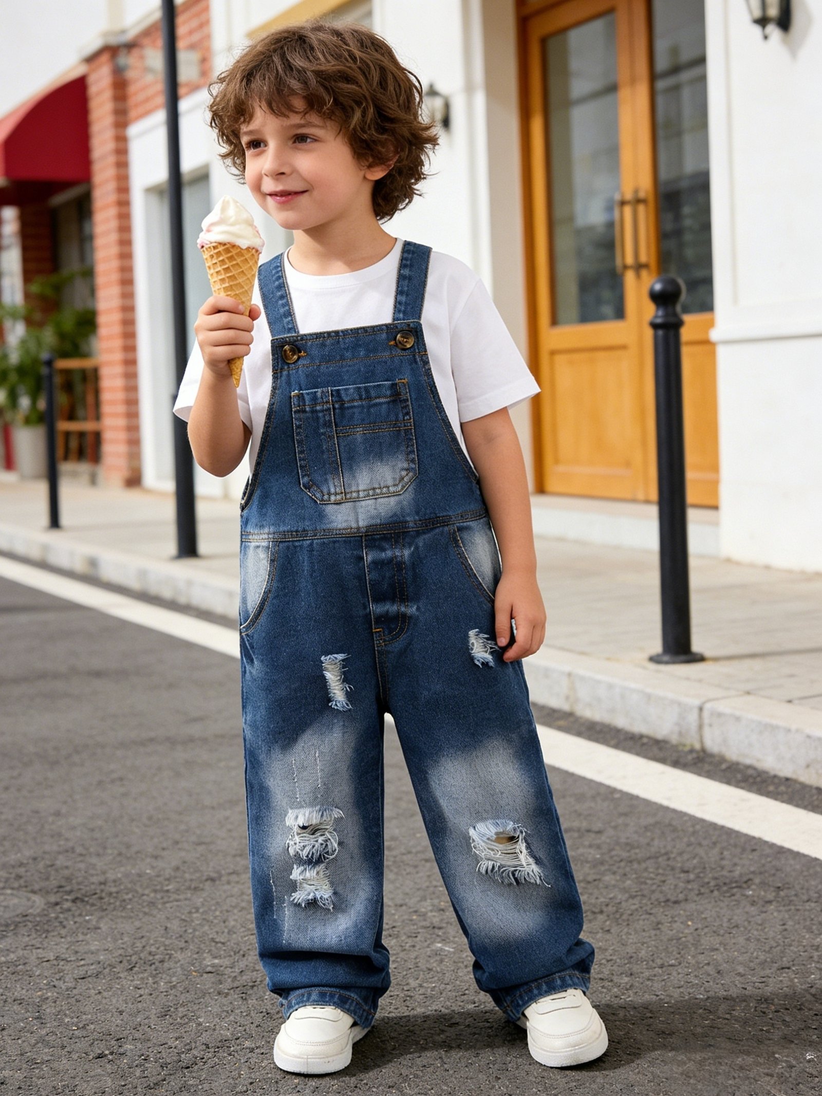 Are you looking for a piece of clothing that combines modern style, superior comfort, and durability to keep up with your child’s activity and vitality? We present to you the deep blue denim overalls with a stylish ripped design, the perfect choice for your child to look fashionable and distinctive in all seasons and during all their outdoor adventures. Let your child explore freely and confidently, wearing overalls designed to keep pace with their boundless ambitions!