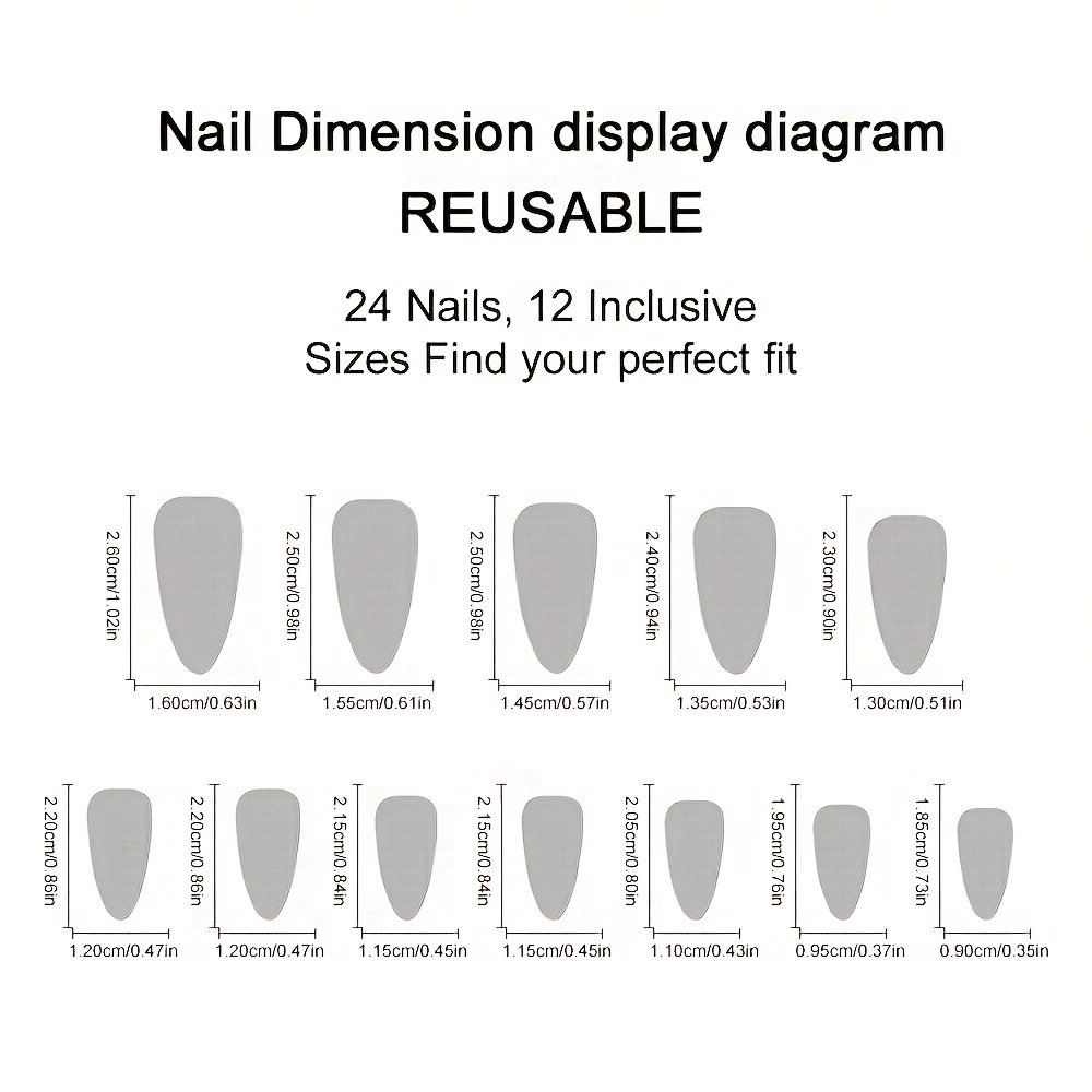 - Superior Quality and Absolute Comfort: Made from high-quality ABS material, lightweight and durable, it ensures unparalleled comfort and long-lasting hold. It features a practical medium length that combines elegance with ease of movement, and comes in a set of 24 pieces to suit all nail shapes and sizes.
