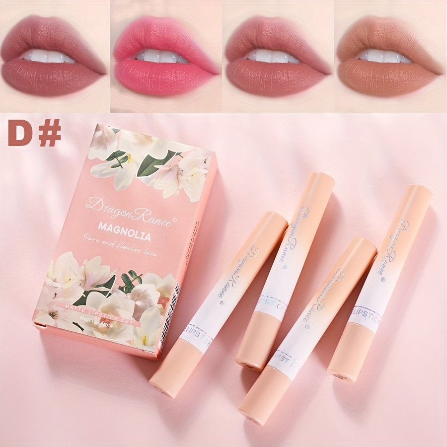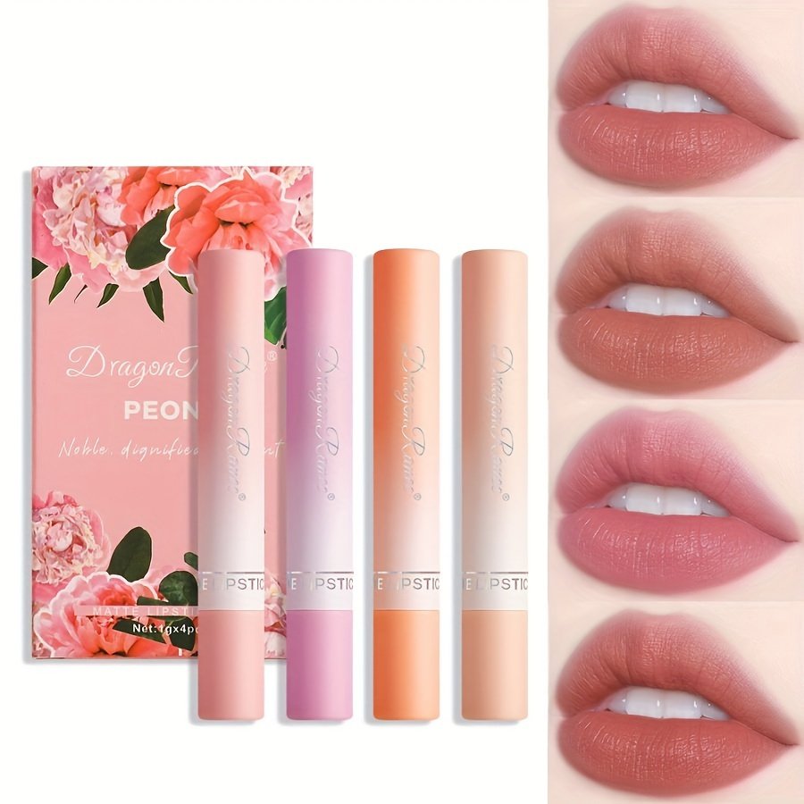Are you looking for a lipstick that combines elegance, staying power, and ultimate comfort? Discover the secret to attractive and radiant lips with our exclusive collection of slim matte lipsticks. This 4-color set is specially designed to give you an unforgettable look, while keeping your lips hydrated and giving them a long-lasting velvety finish without smudging or fading. Get ready to shine with unprecedented confidence and charm!