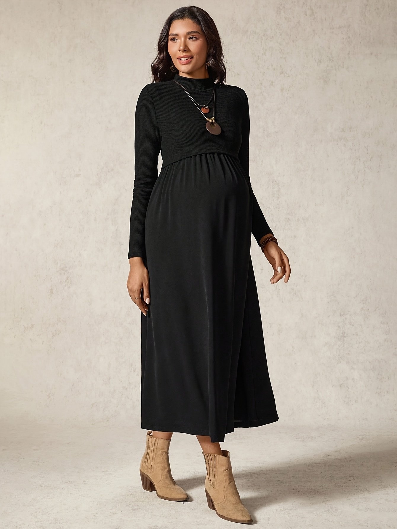 Welcome, radiant mother! With every new stage in your motherhood journey, the need for clothing that combines supreme comfort and attractive elegance increases. We present to you the Maternity and Nursing Dress, specially designed to accompany you through autumn and winter, providing you with the warmth you need and the elegant look you deserve, whether you are pregnant or breastfeeding. Let your elegance blossom at all times with this dress that combines practicality and modern design.