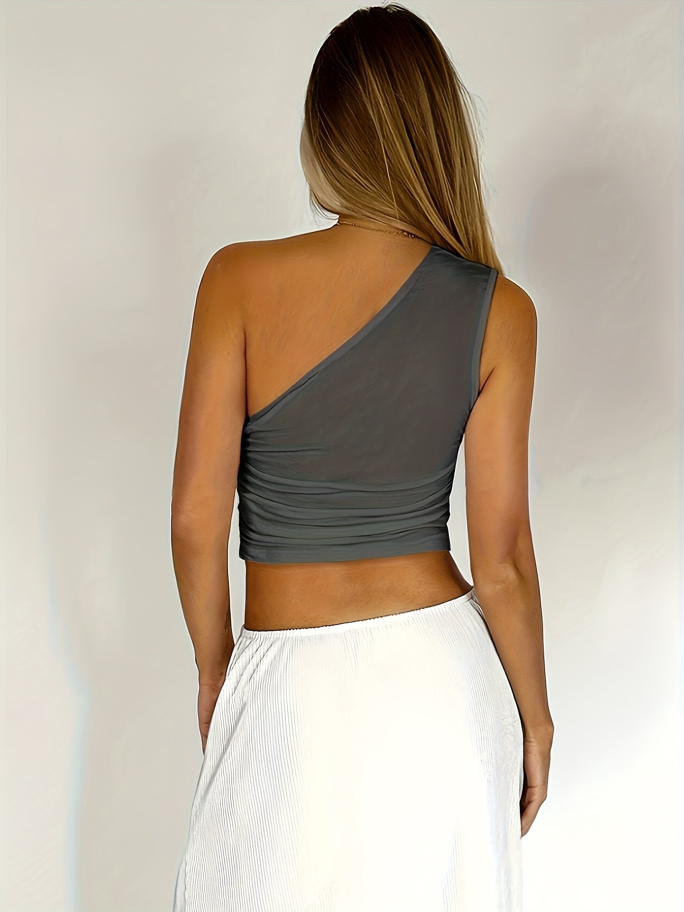 Modern Allure: Stretchy One-Shoulder Blouse – Limitless Style!