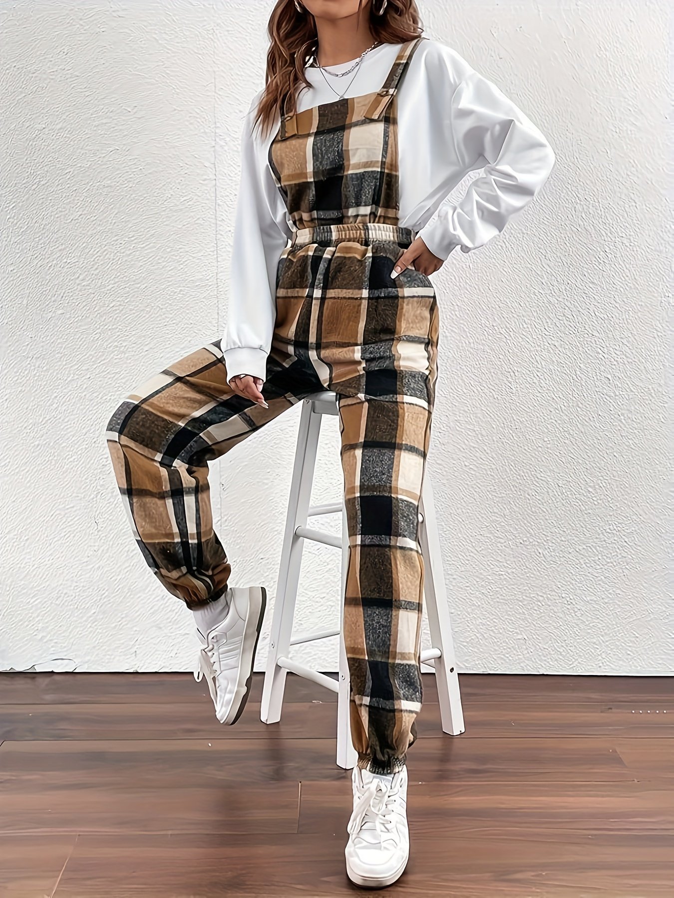 Get ready to refresh your wardrobe with a unique piece that combines modern elegance and ultimate comfort. We present to you plaid suspender pants that will give you a bold and distinctive look, perfect for all your occasions from work to travel or daily outings. A design that blends classic and contemporary styles, so you remain radiant with every step.