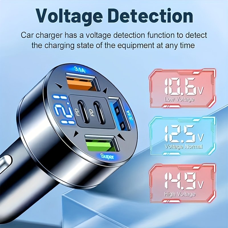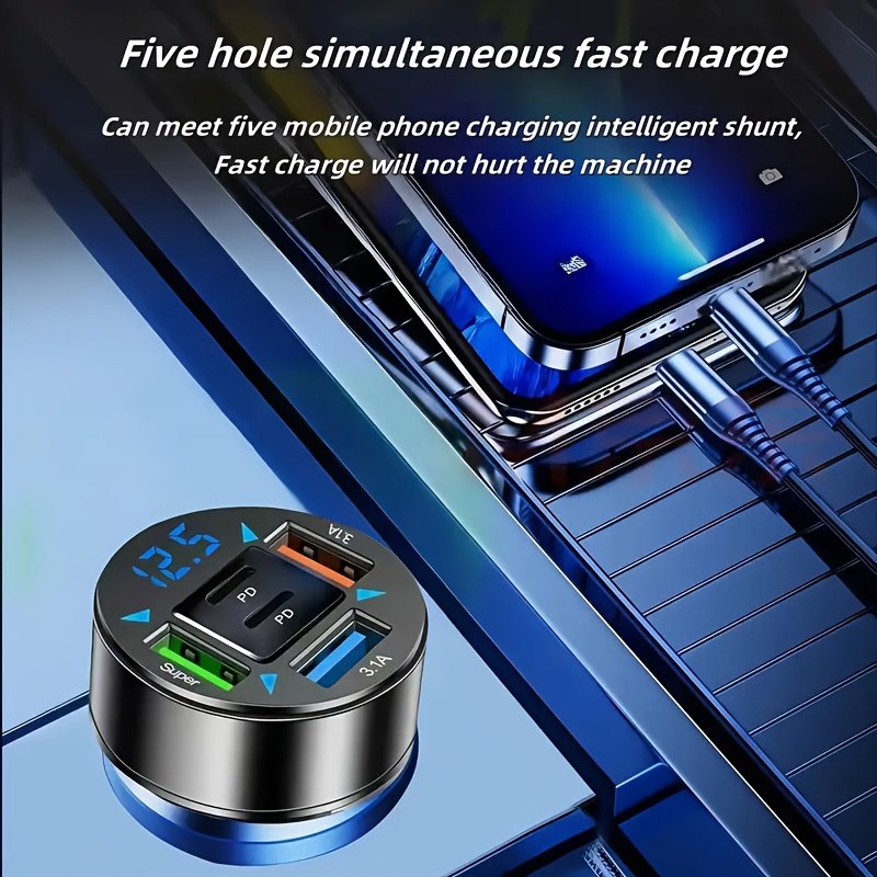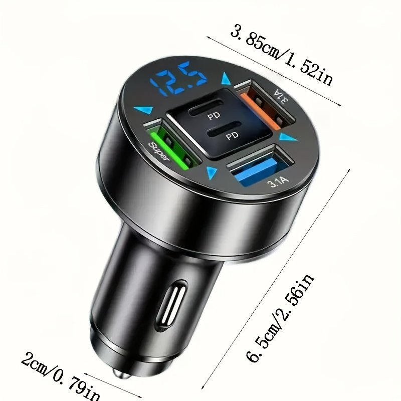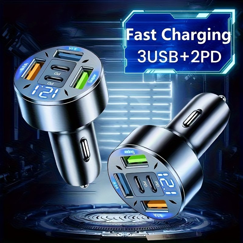 • Multiple & Diverse Charging Ports: Equipped with 2 PD (Power Delivery) ports and 3 USB-C ports, along with broad compatibility with USB 2.0, it allows you to efficiently charge up to 4 devices simultaneously, making it the perfect companion for you and all your passengers.