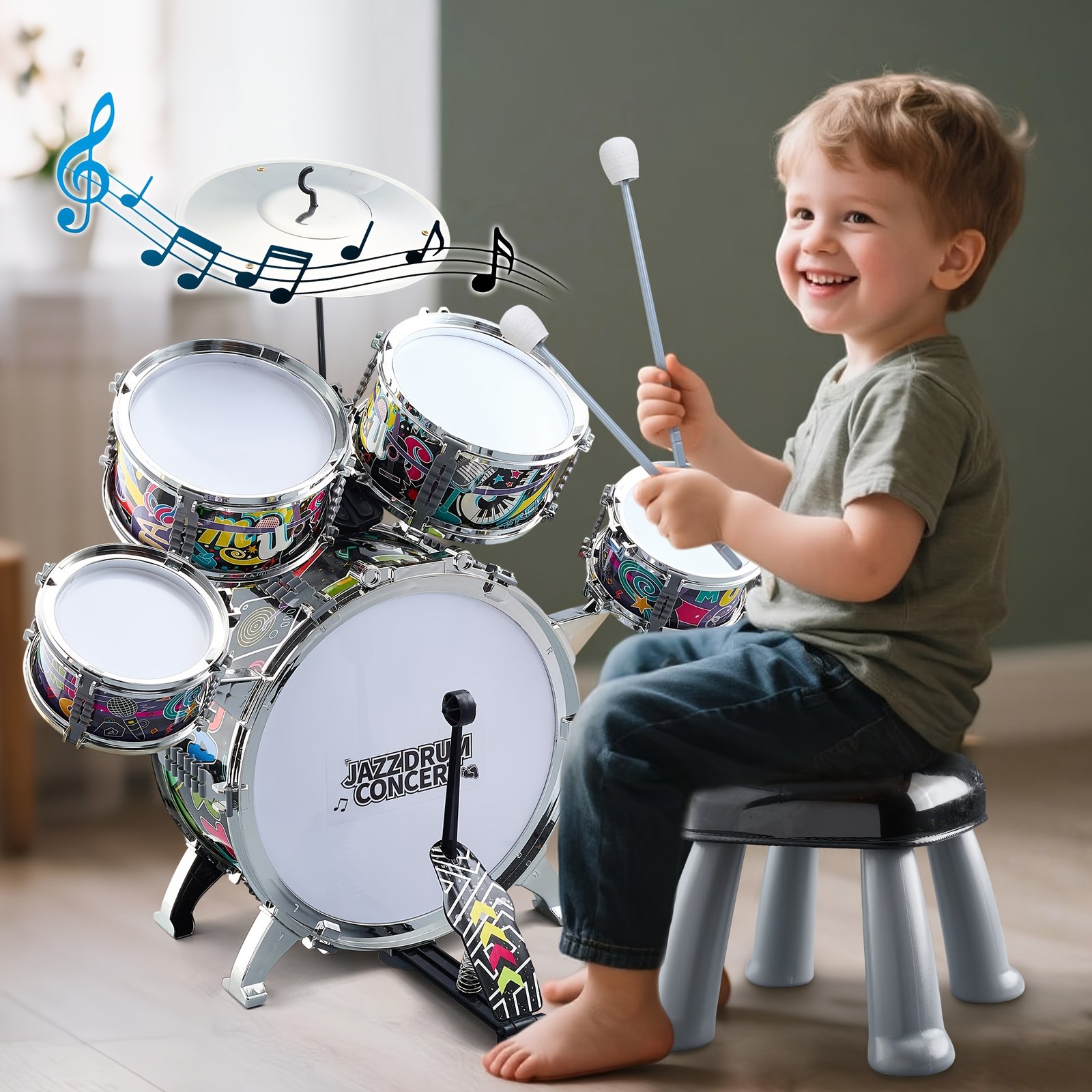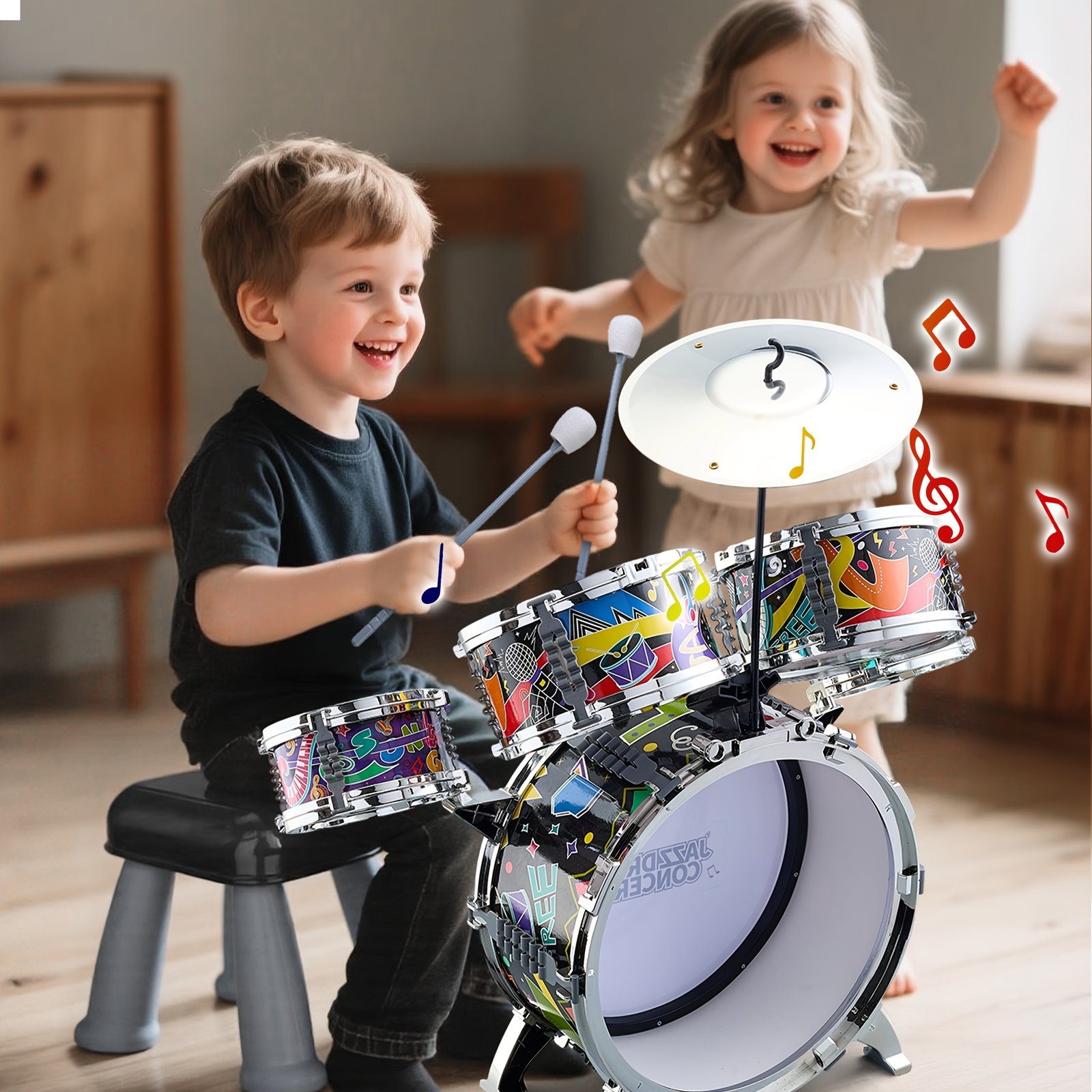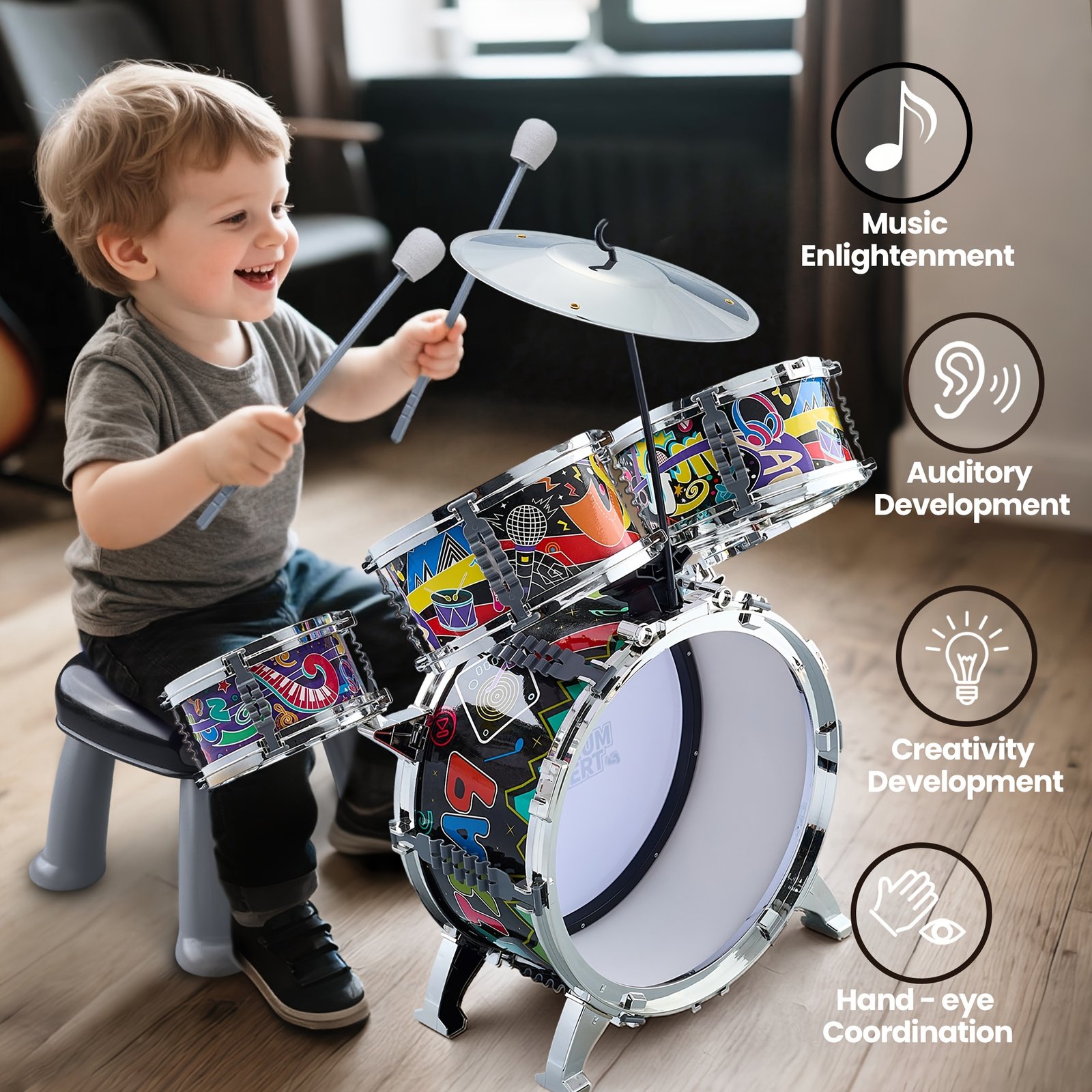 Ignite the spark of music and creativity in your child’s heart with this amazing jazz drum set! Let them discover the fun world of rhythm and unleash their artistic talents, while developing vital skills that will stay with them for life. This set is not just a toy; it’s your child’s first gateway to the enchanting world of music and limitless fun.