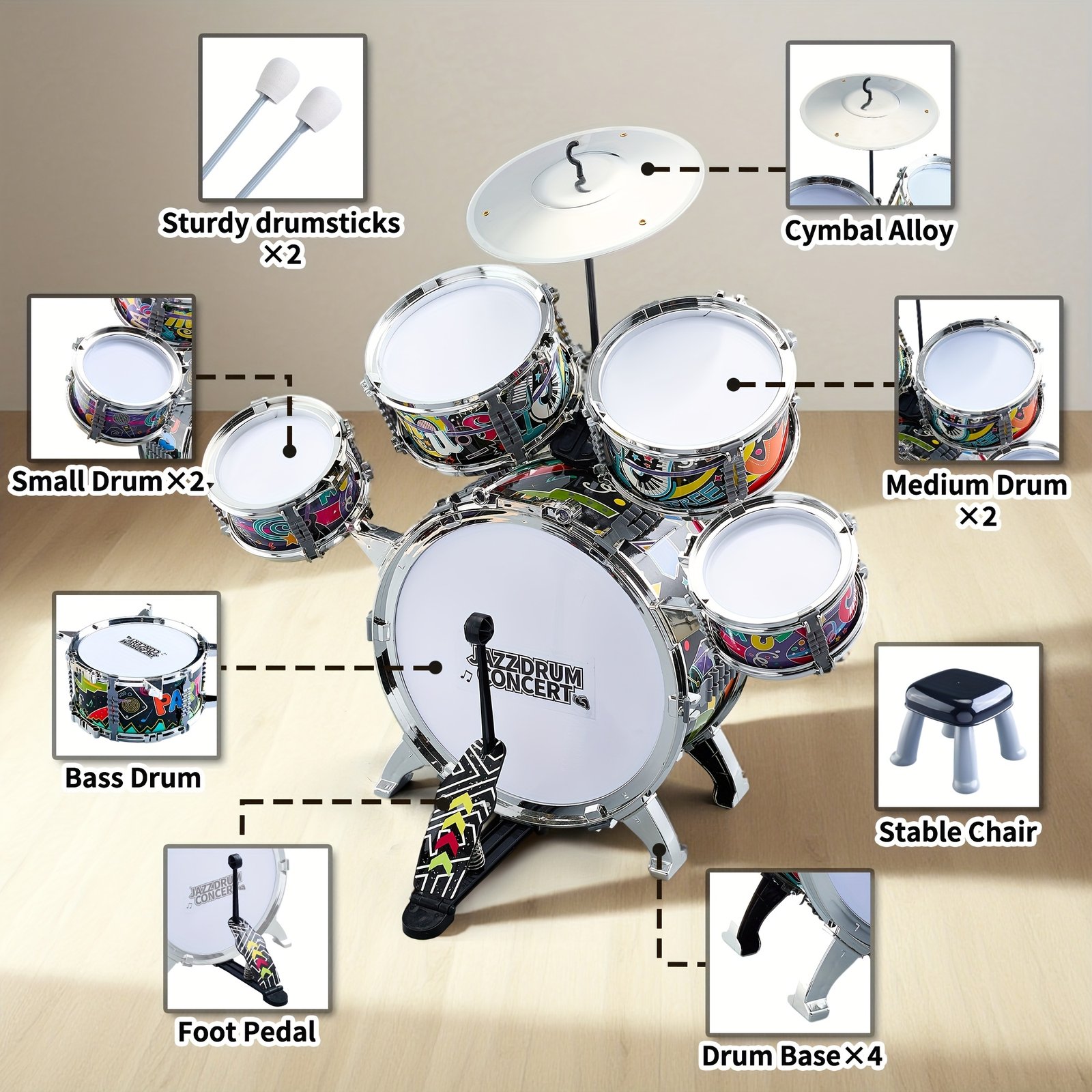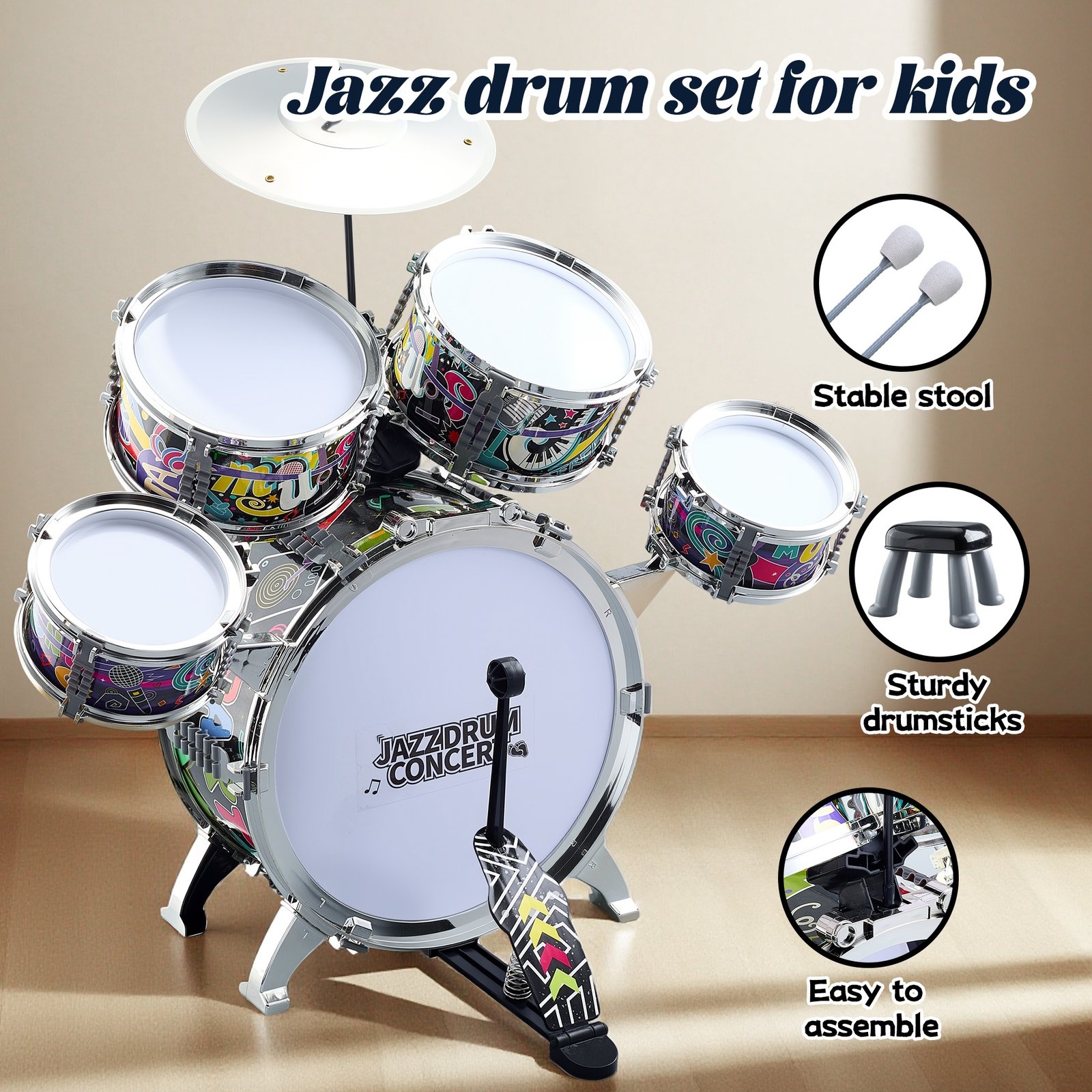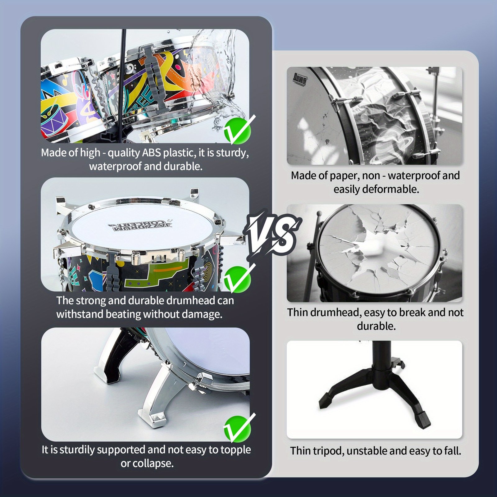 Ignite the spark of music and creativity in your child’s heart with this amazing jazz drum set! Let them discover the fun world of rhythm and unleash their artistic talents, while developing vital skills that will stay with them for life. This set is not just a toy; it’s your child’s first gateway to the enchanting world of music and limitless fun.