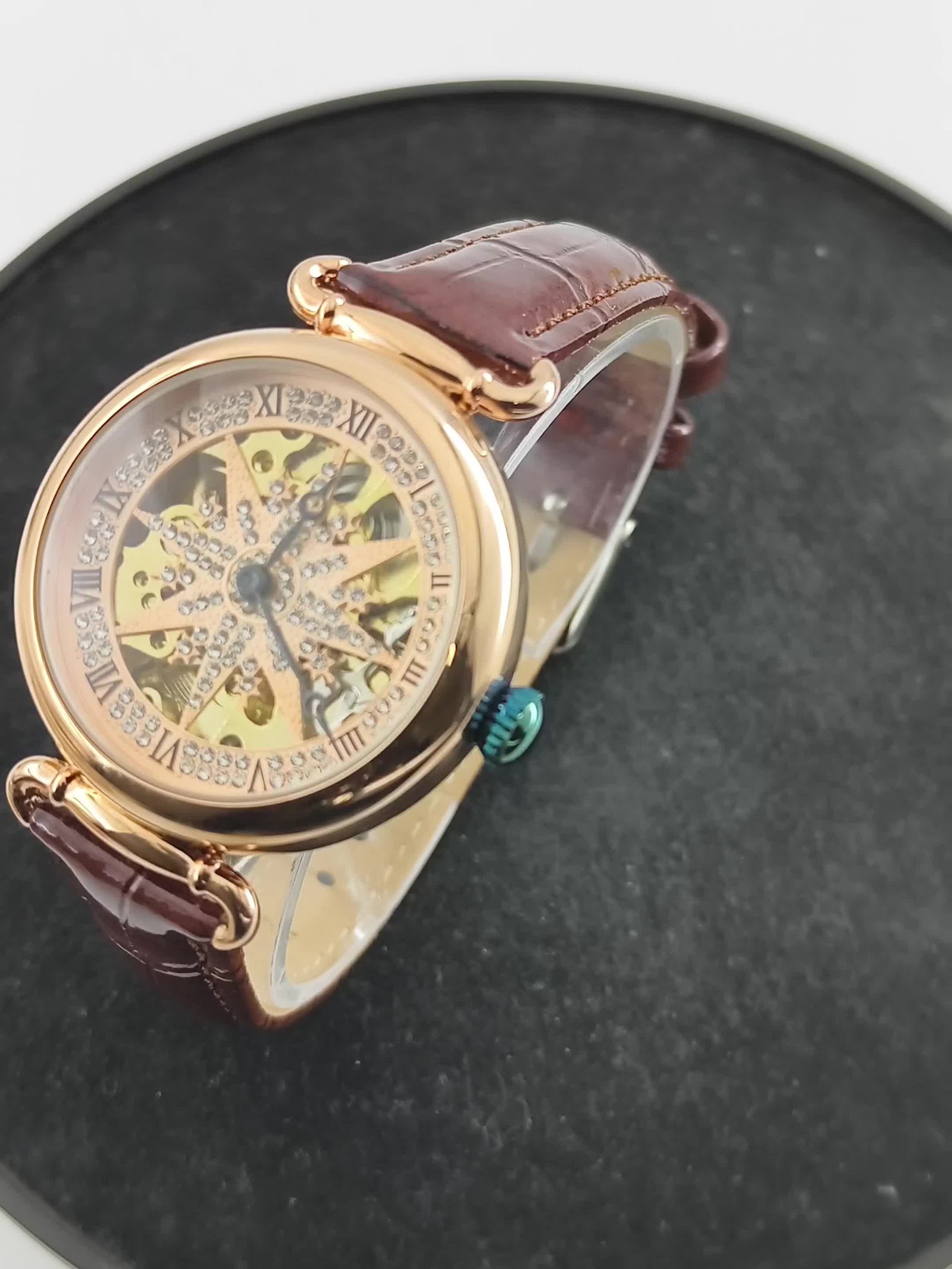 - Exposed Mechanical Movement: Witness the beauty of the internal mechanism come to life through its unique skeleton design, featuring rose gold finishes that steal the spotlight and highlight exquisite craftsmanship.
