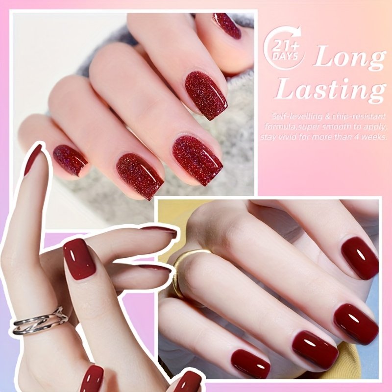 • Stunning Color Variety: Discover 12 diverse colors combining calm neutral shades, elegant nude tones, and bold reds, along with multiple shiny and glittery options using colored gel, glitter gel, and sequin gel finishes, to suit every mood and occasion.