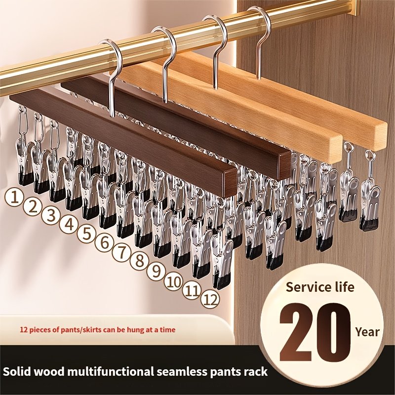 - Unparalleled Space Saving: Accommodate up to 12 pieces of trousers, jeans, shorts, hats, or even socks on just one hanger, freeing up valuable space in your closet and utilizing every corner with high efficiency.