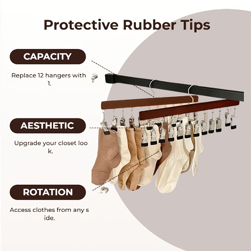 - Practical Design with Strong Clips: Equipped with 12 strong and stable clips that keep your clothes in place without slipping or creasing, perfectly suitable for effectively and securely storing various items without leaving any marks.