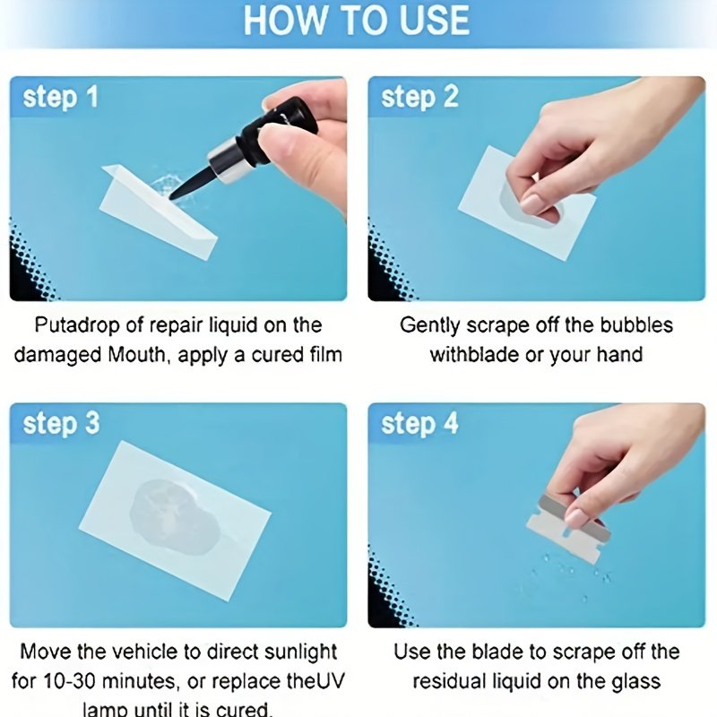 - Compatible with All Car Glass Types: This liquid solution is specifically designed to strongly adhere to all types of vehicle glass, ensuring a durable and long-lasting repair.