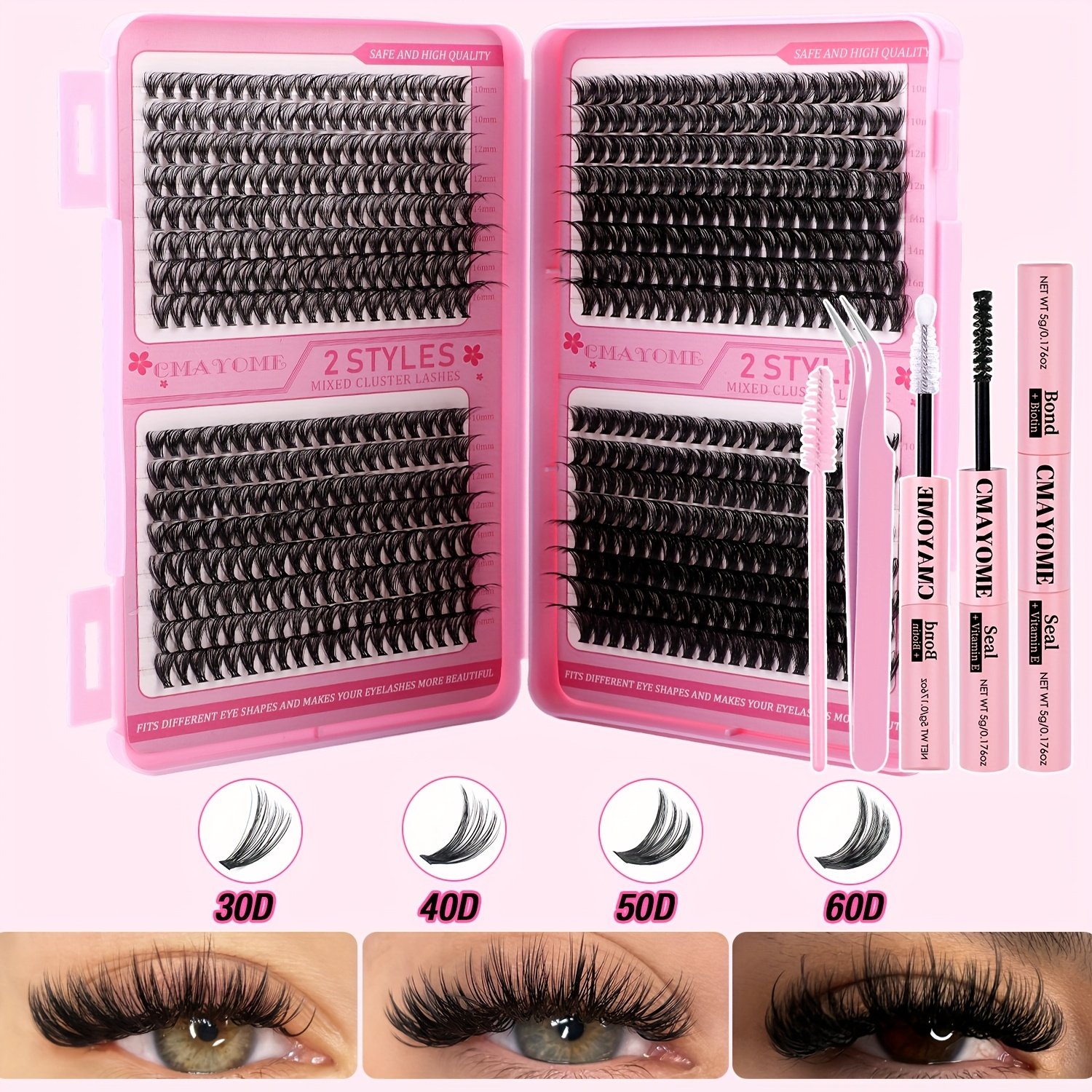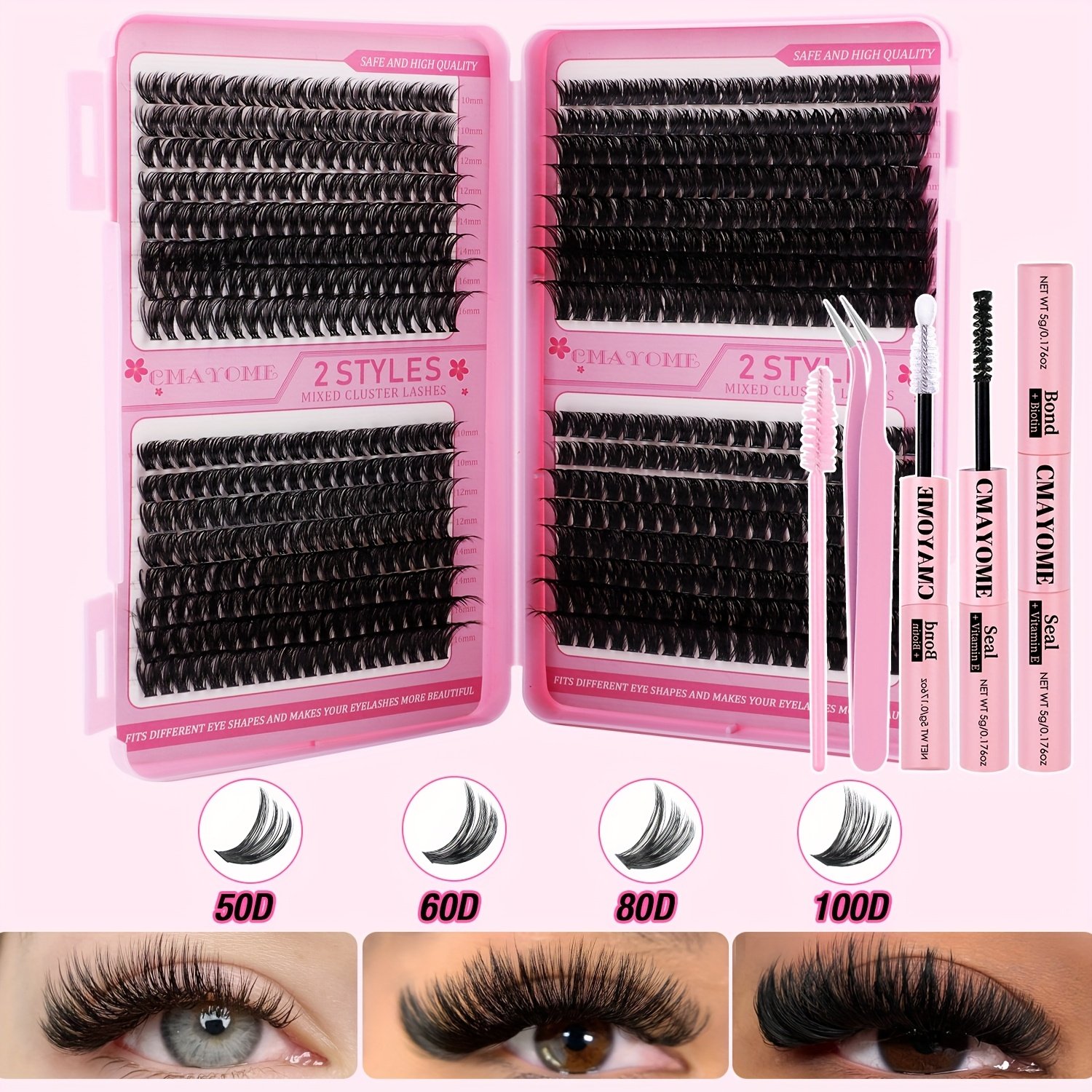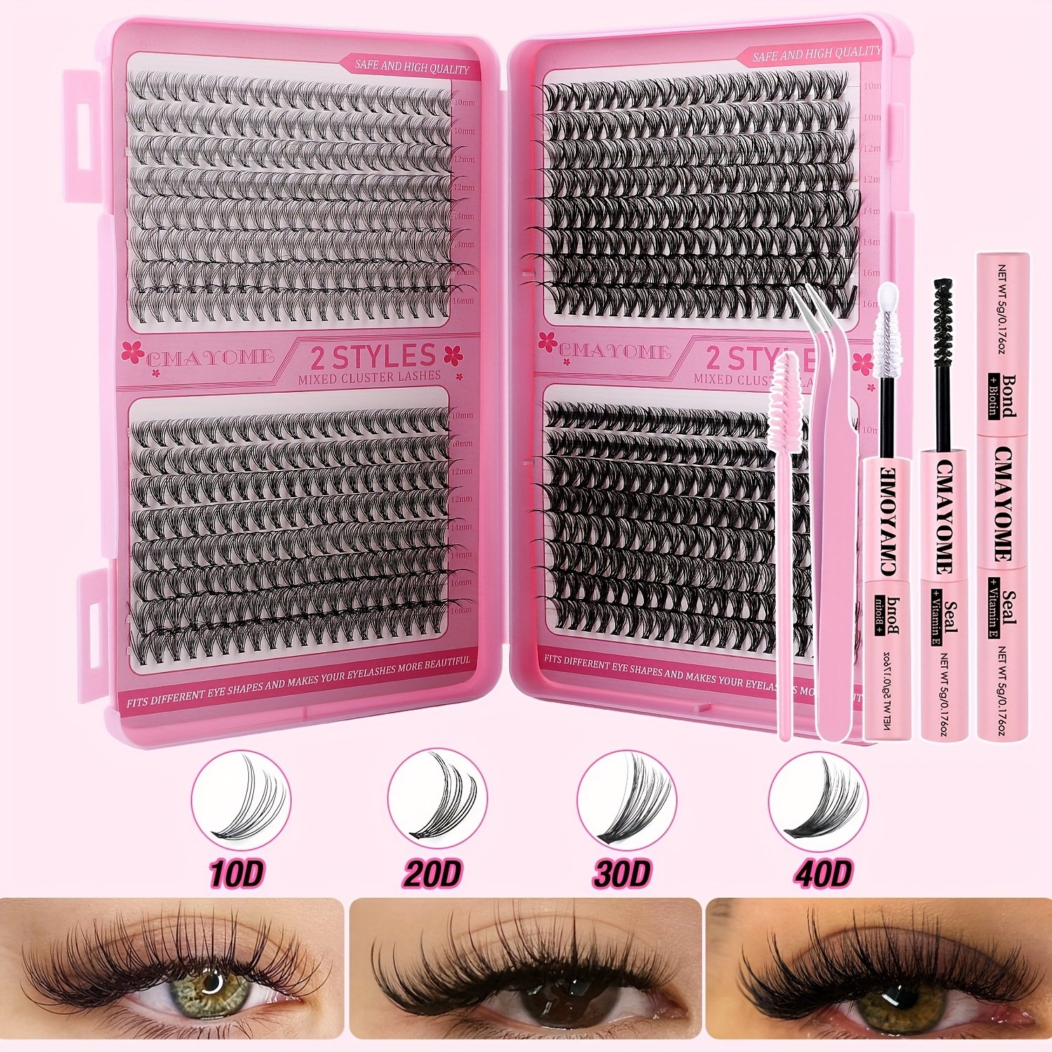10D+20D+30D+40D, 30D+40D+50D+60D, 50D+60D+80D+100D, Eyelash glue + tweezers (without eyelashes)