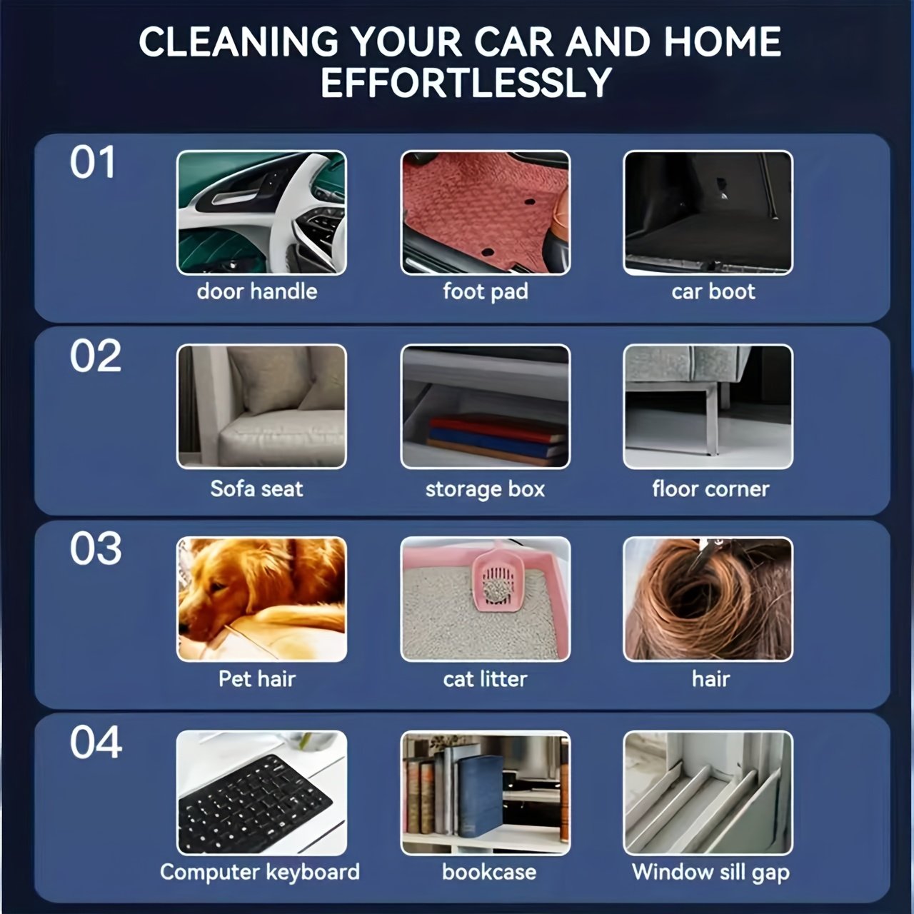 - Multi-Accessory Configuration for Perfect Cleaning: It comes with a variety of accessories that ensure comprehensive cleaning for every environment, from soft surfaces to narrow crevices, making it the perfect tool for your car, home, and office.
