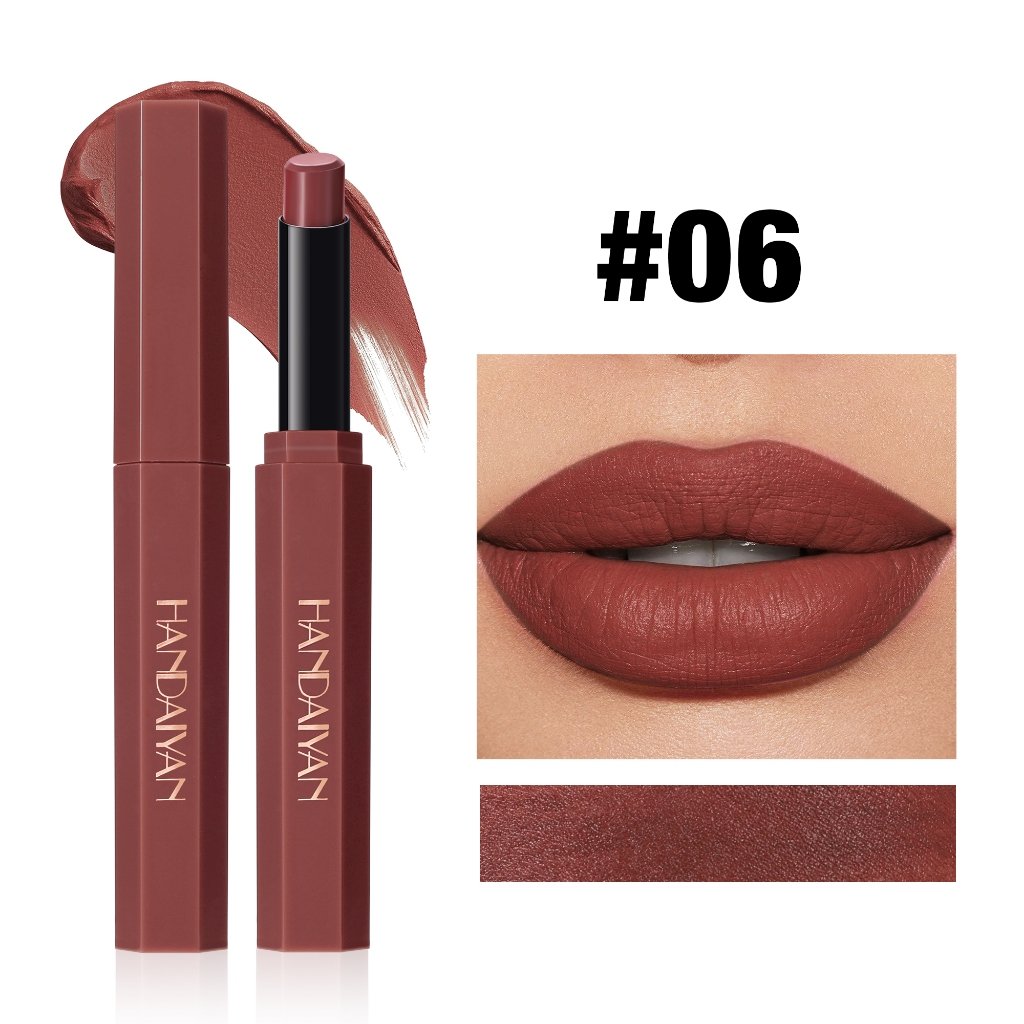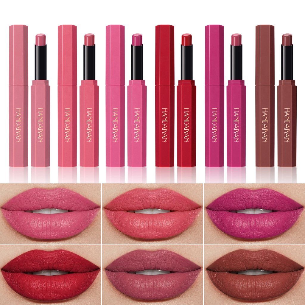 Do you dream of captivating velvet matte lips without feeling dryness or discomfort? Say goodbye to compromising comfort for beauty! We present to you the brand-new velvet matte lipstick collection with 6 enchanting shades, specially designed to give you an elegant, long-lasting look, with an unparalleled touch of hydration. Get ready for a perfect lip makeup experience that combines luxury and comfort.