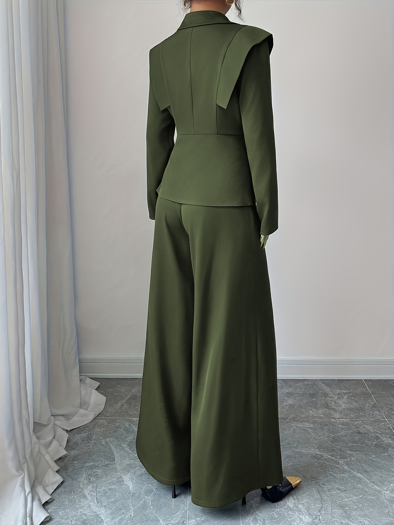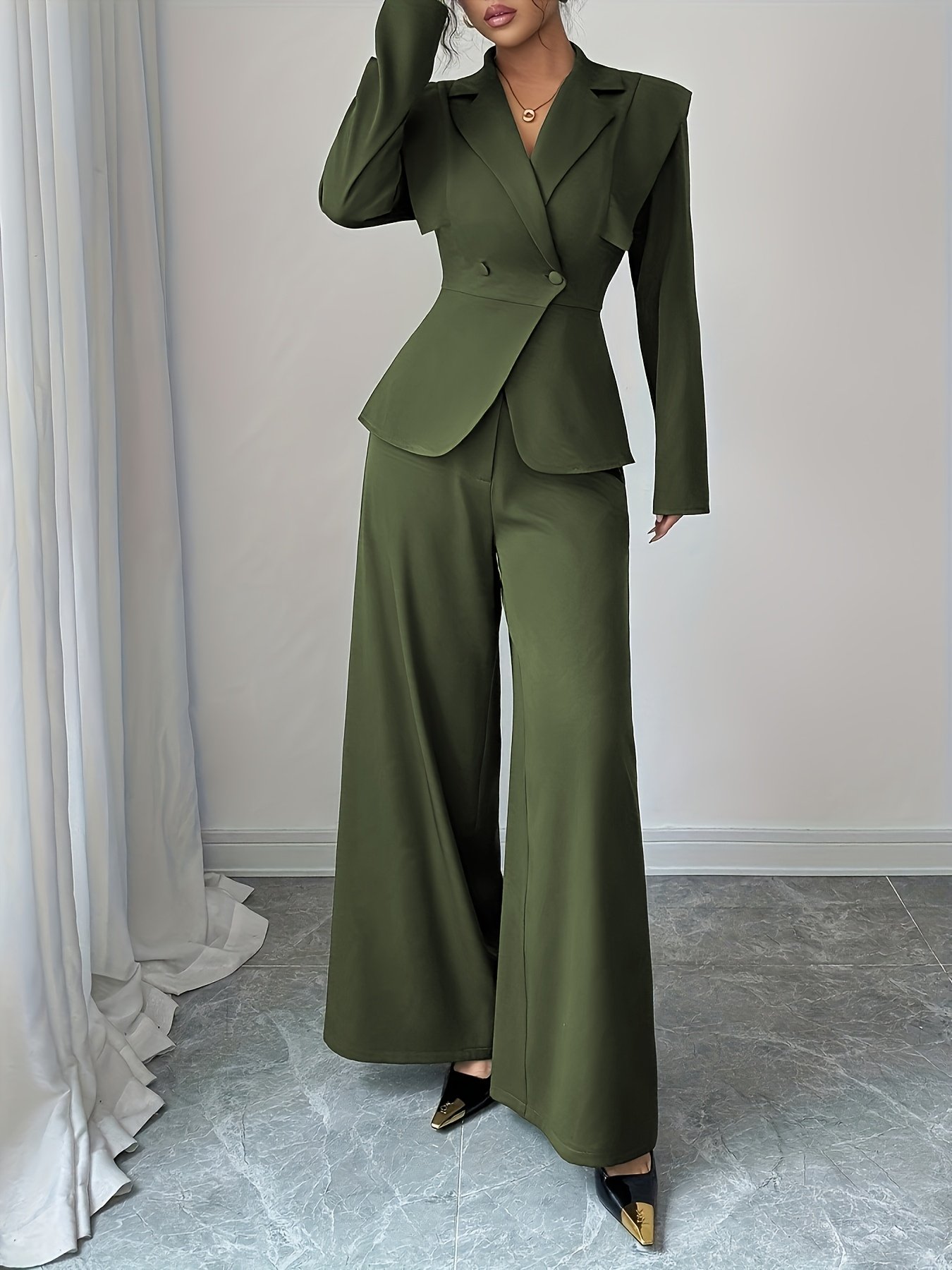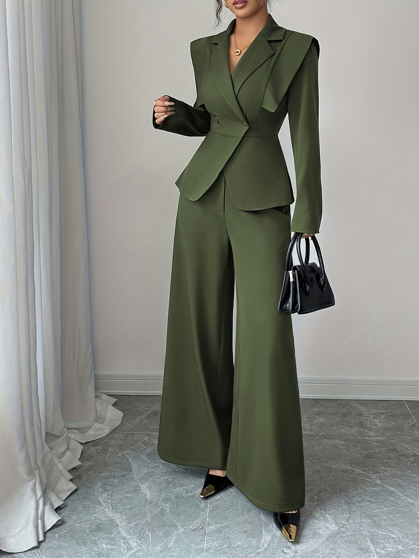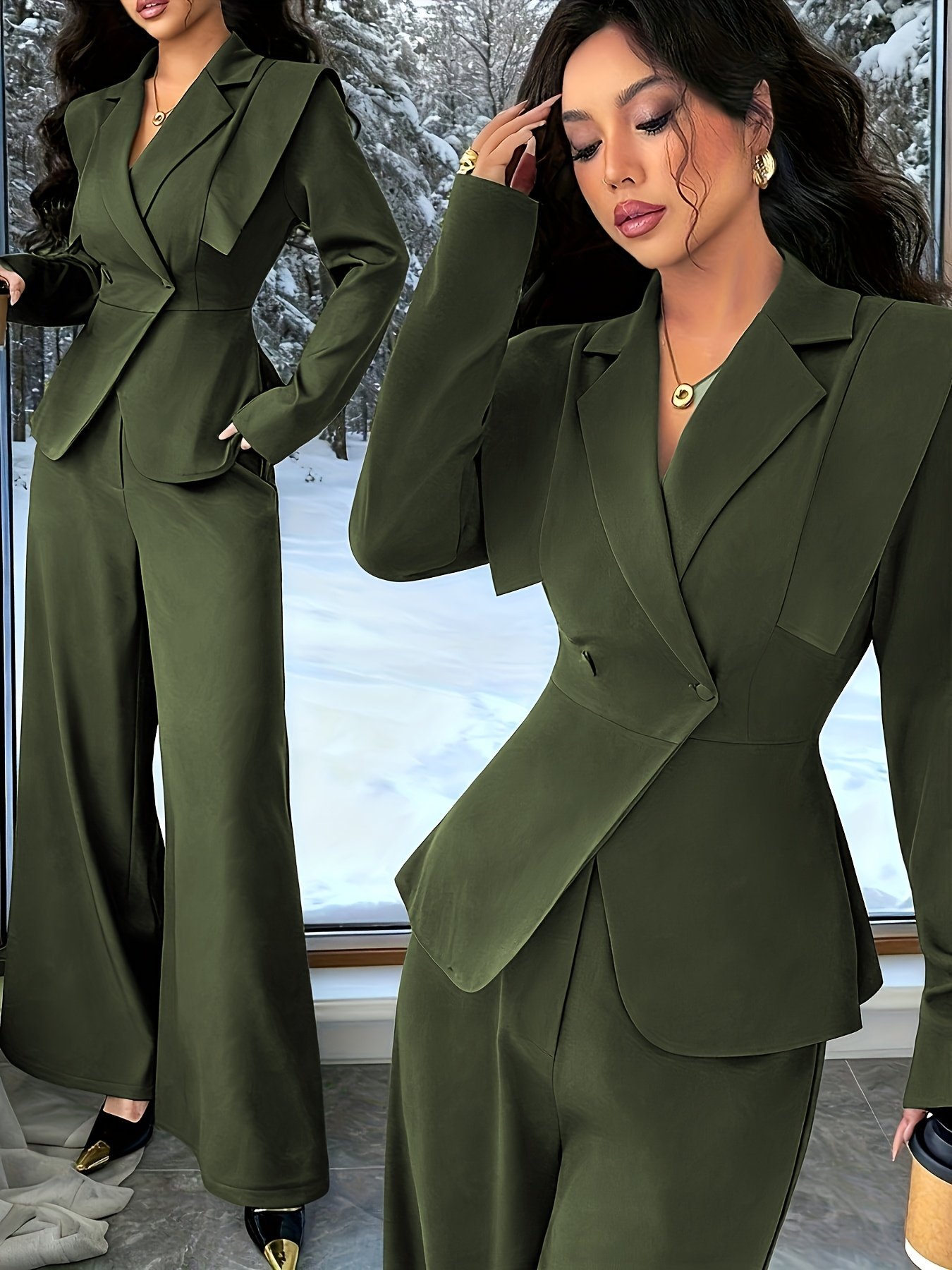 - Striking Jacket with Elegant Details: Features a long-sleeved jacket with a notched lapel, adding a touch of elegant formality, and a meticulously designed waist to define your figure in a feminine and attractive way.