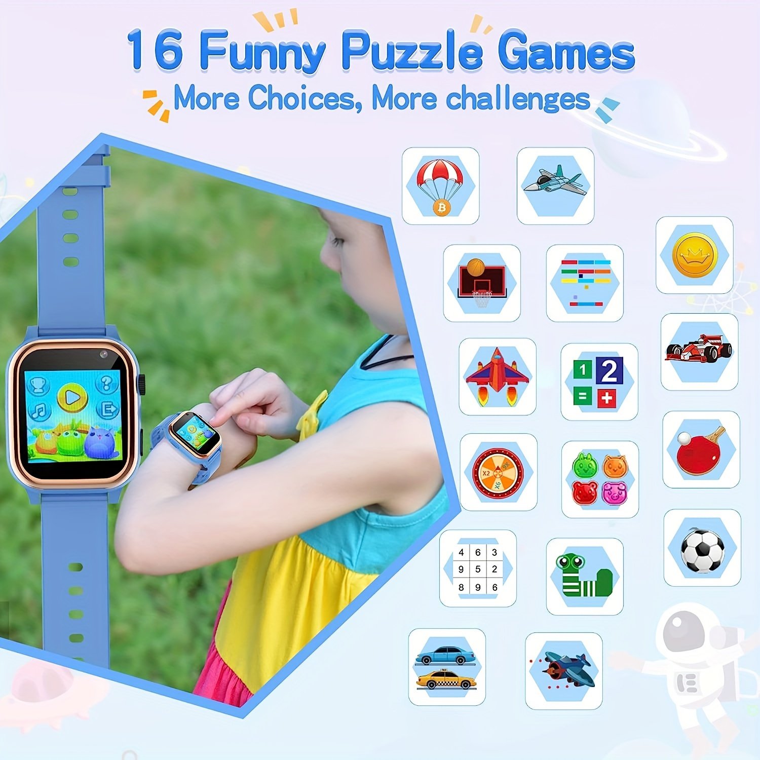 - 16 Educational and Entertaining Games: Let your child immerse themselves in a world of mental challenges and fun games that enhance critical thinking and develop their cognitive skills in an engaging and innovative way.