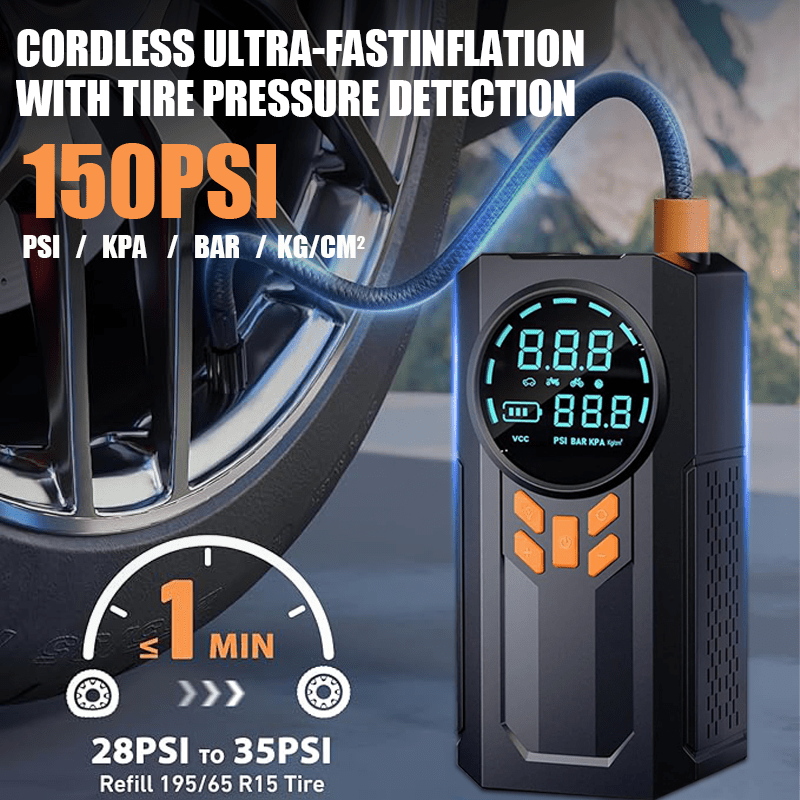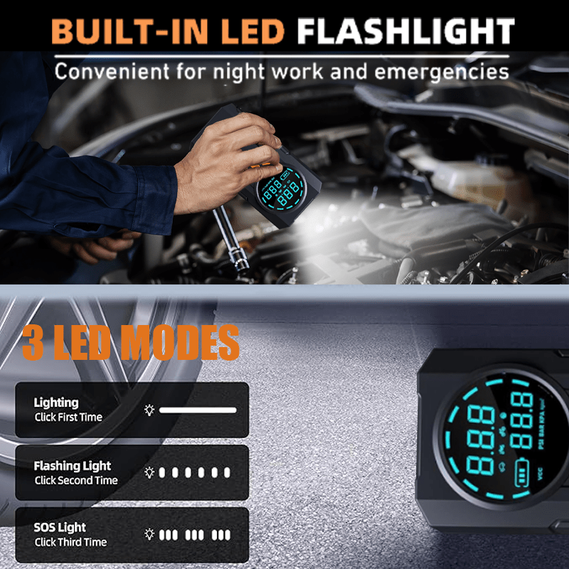 Tired of worrying about your car or bike tires at unexpected moments? Say goodbye to embarrassing situations! We offer you the perfect solution that combines power and flexibility in one device: the Smart Portable Air Compressor.