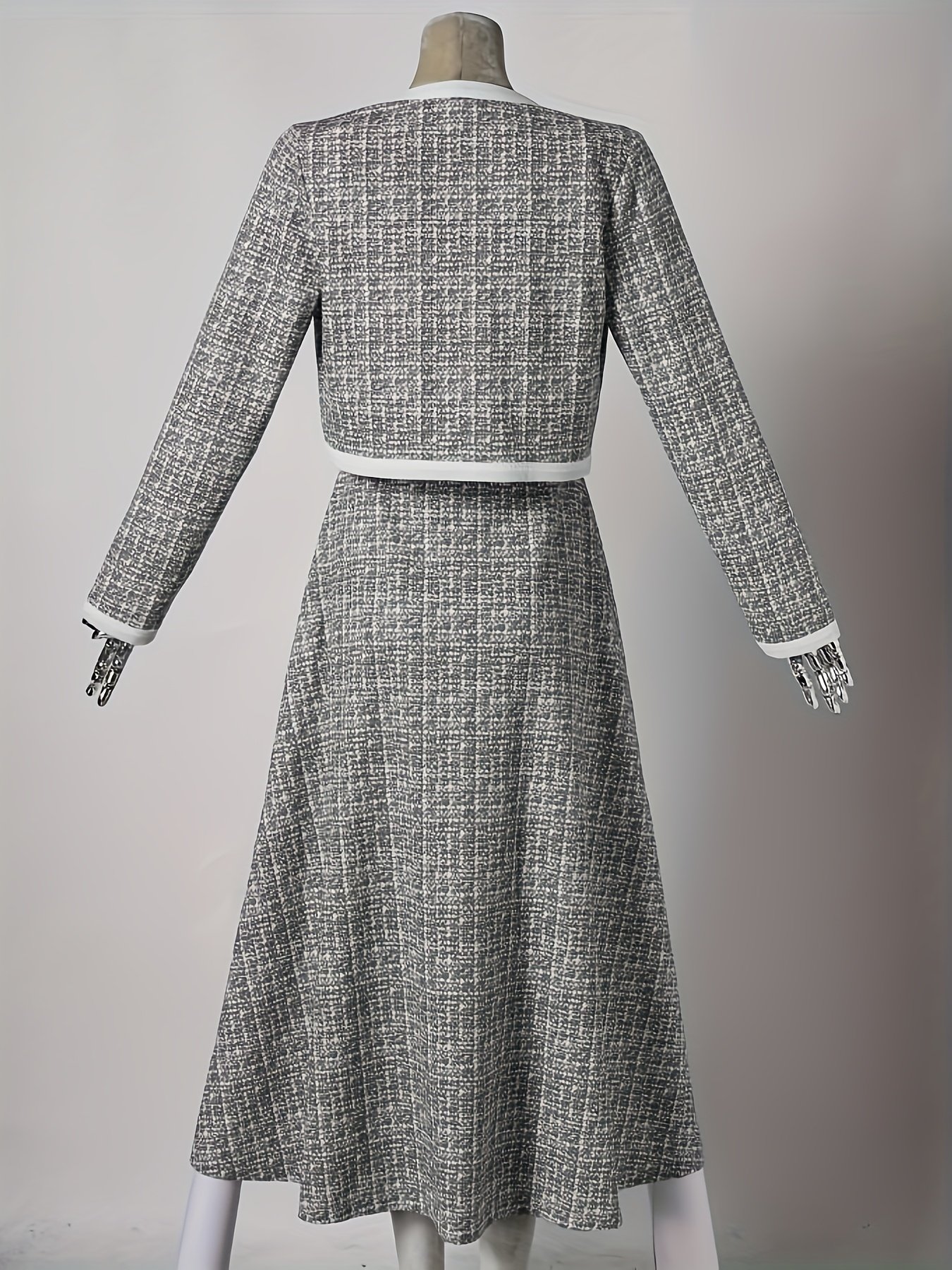 Elevate your daily and work attire with this sophisticated elegance set that combines luxury and comfort. This set includes an elegant long-sleeved blouse and a matching skirt, designed to give you an unforgettable presence and add a touch of sophistication to your wardrobe.