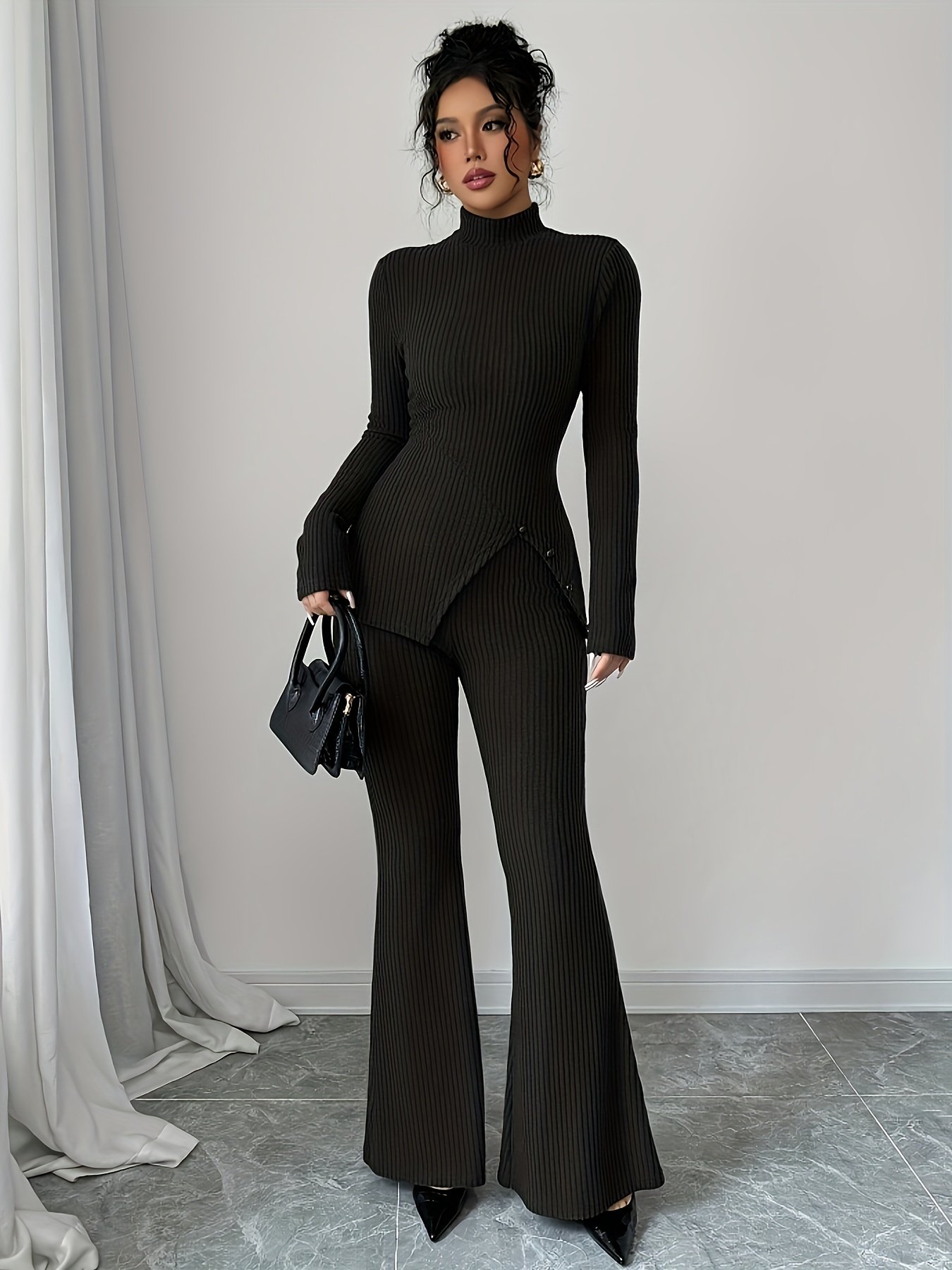 - Unique and Modern Design: The set features a half-high collar and an asymmetrical top design, adding a modern and bold touch to your look, highlighting your refined taste in fashion choices.