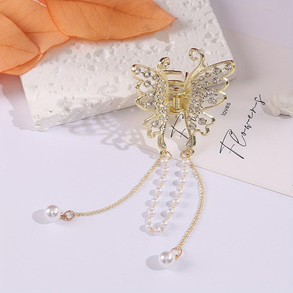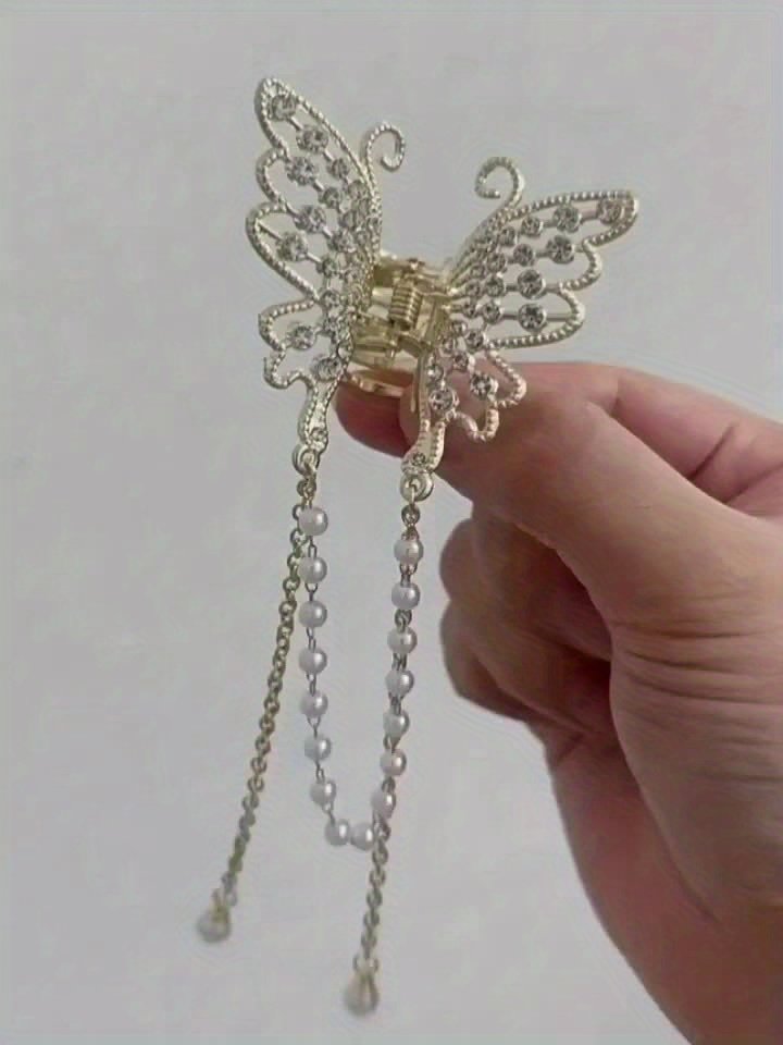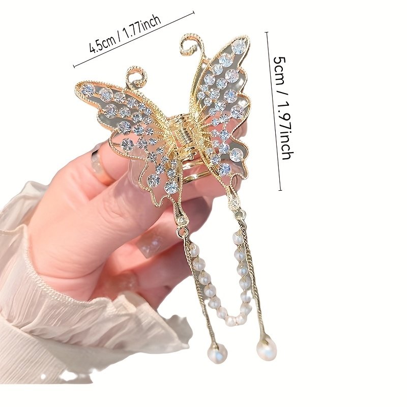 Are you looking for the enchanting addition to complete your look? Add a touch of sophistication and charm to your hairstyle with this luxurious butterfly clip, designed to give you an unforgettable sparkle on every occasion. This clip combines the natural beauty of a butterfly with the breathtaking sparkle of crystal, making it an artistic piece that adorns your hair and highlights your allure.