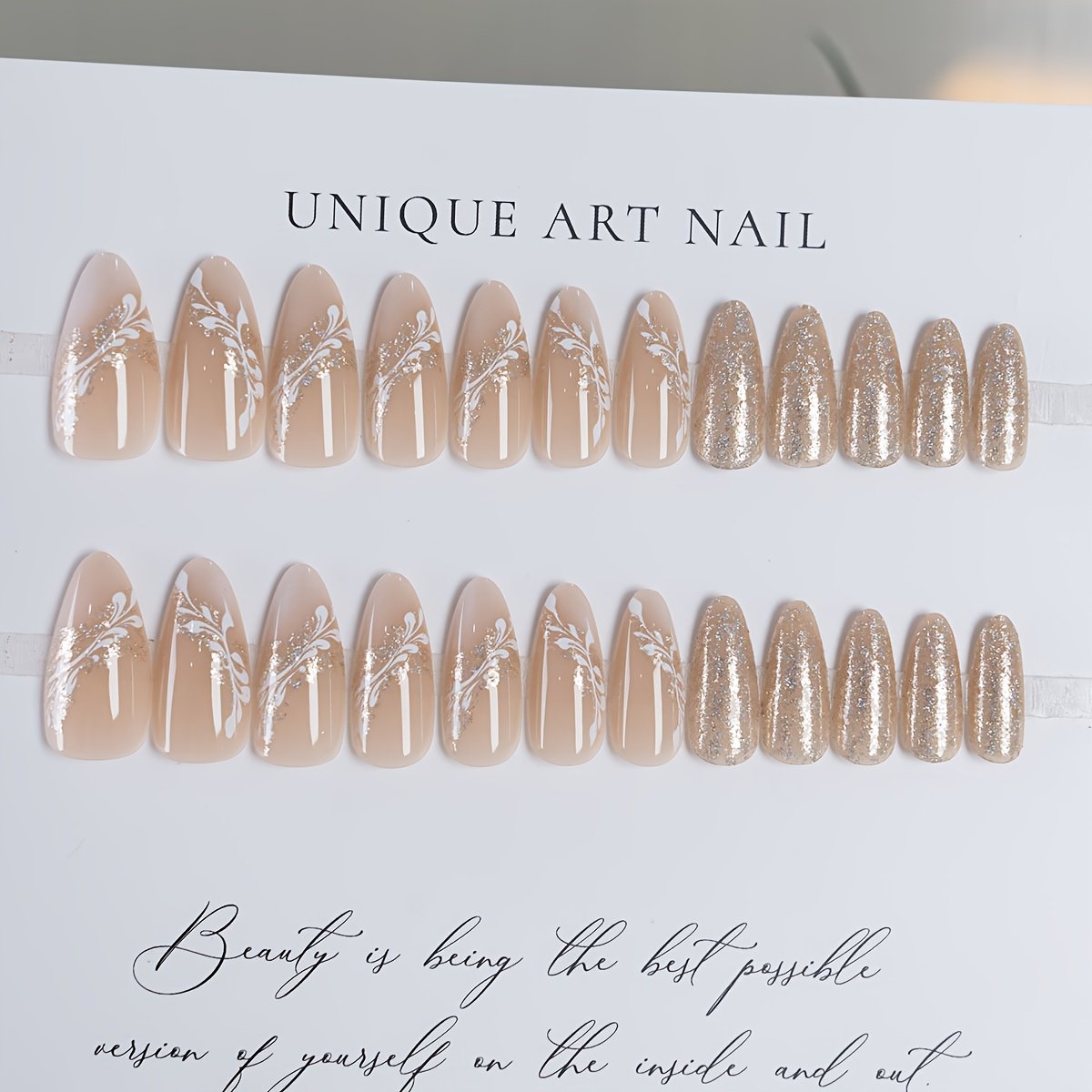 Do you dream of perfect nails that add a touch of sophistication and beauty to your look? Say goodbye to crowded beauty salons and long waits! We offer you the perfect solution to dazzle with your dream nails in just a few minutes. Discover our collection of French almond artificial nails that combine modern elegance with enchanting sparkle, giving you a ready-to-go look for special occasions or to add a touch of luxury to your everyday life.