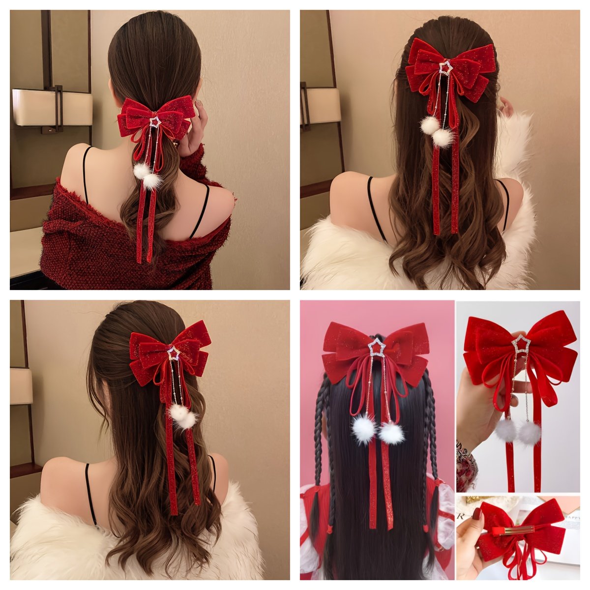 - Luxurious Red Velvet Bow Design: Adds a touch of boldness and classic elegance, giving your hair exceptional volume and appeal, making you the center of attention at any gathering.