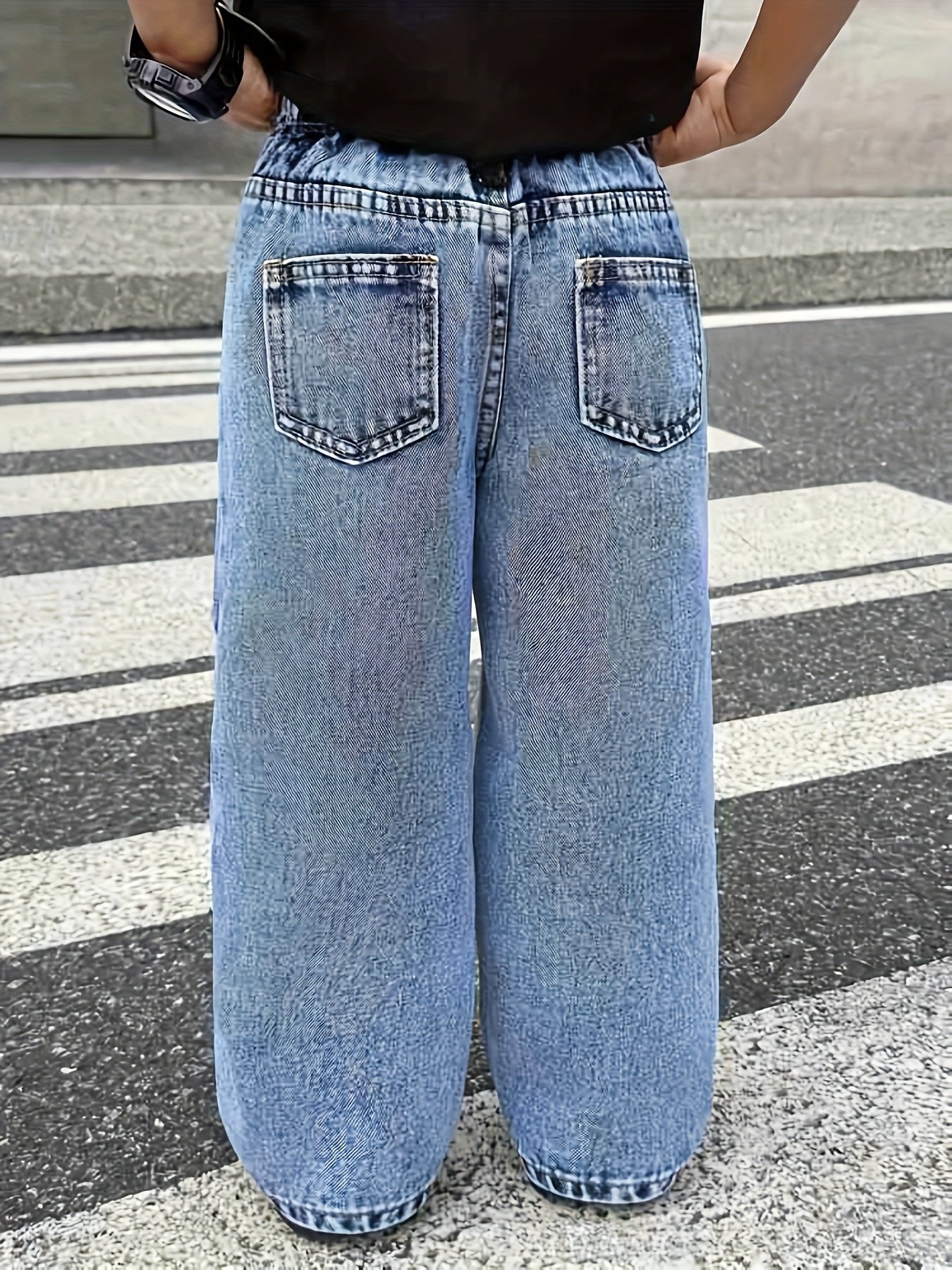 - Exceptional Comfort: Featuring a loose and comfortable fit (Loose Fit) and an elastic waistband, these jeans ensure your child has complete freedom of movement without any restrictions, perfect for daily play and adventures.