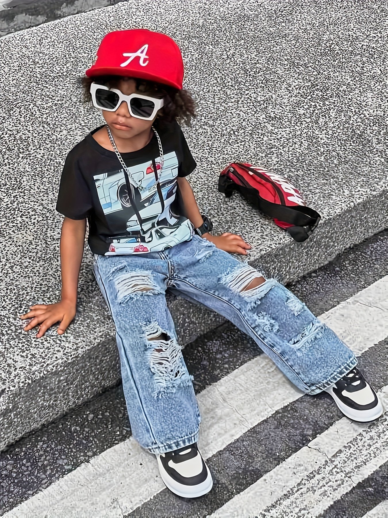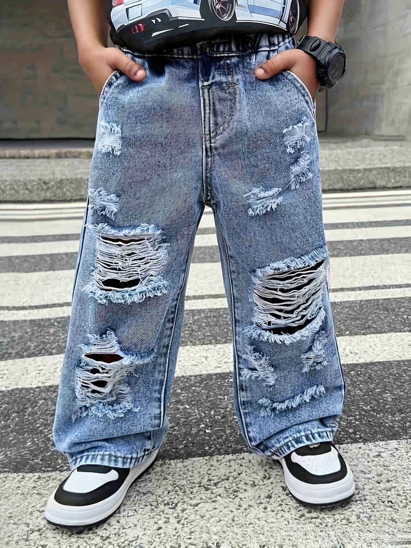 - Bold Modern Style: Featuring ripped details and a trendy “street style” touch, these jeans give your child a youthful and modern look that captures attention.