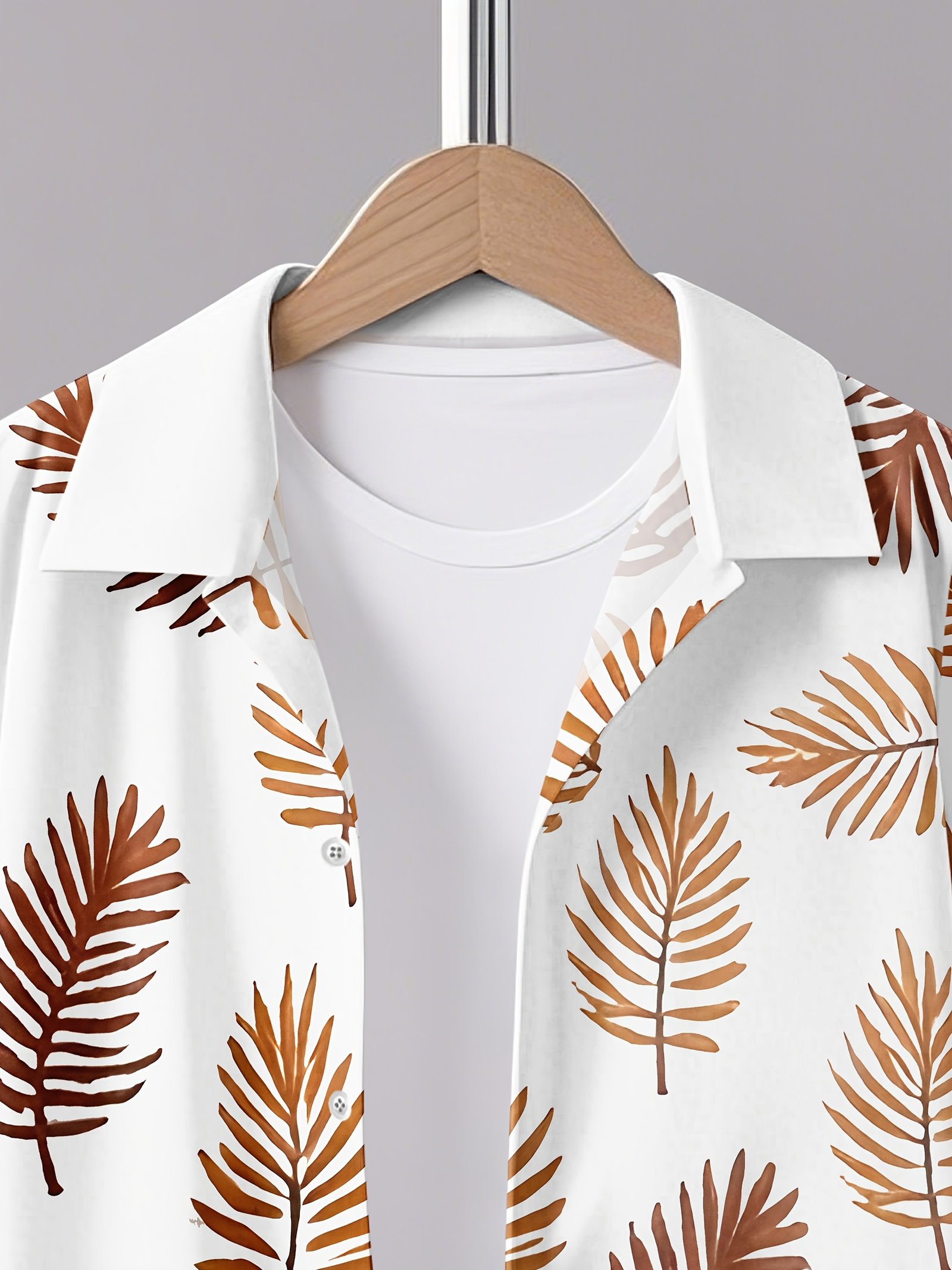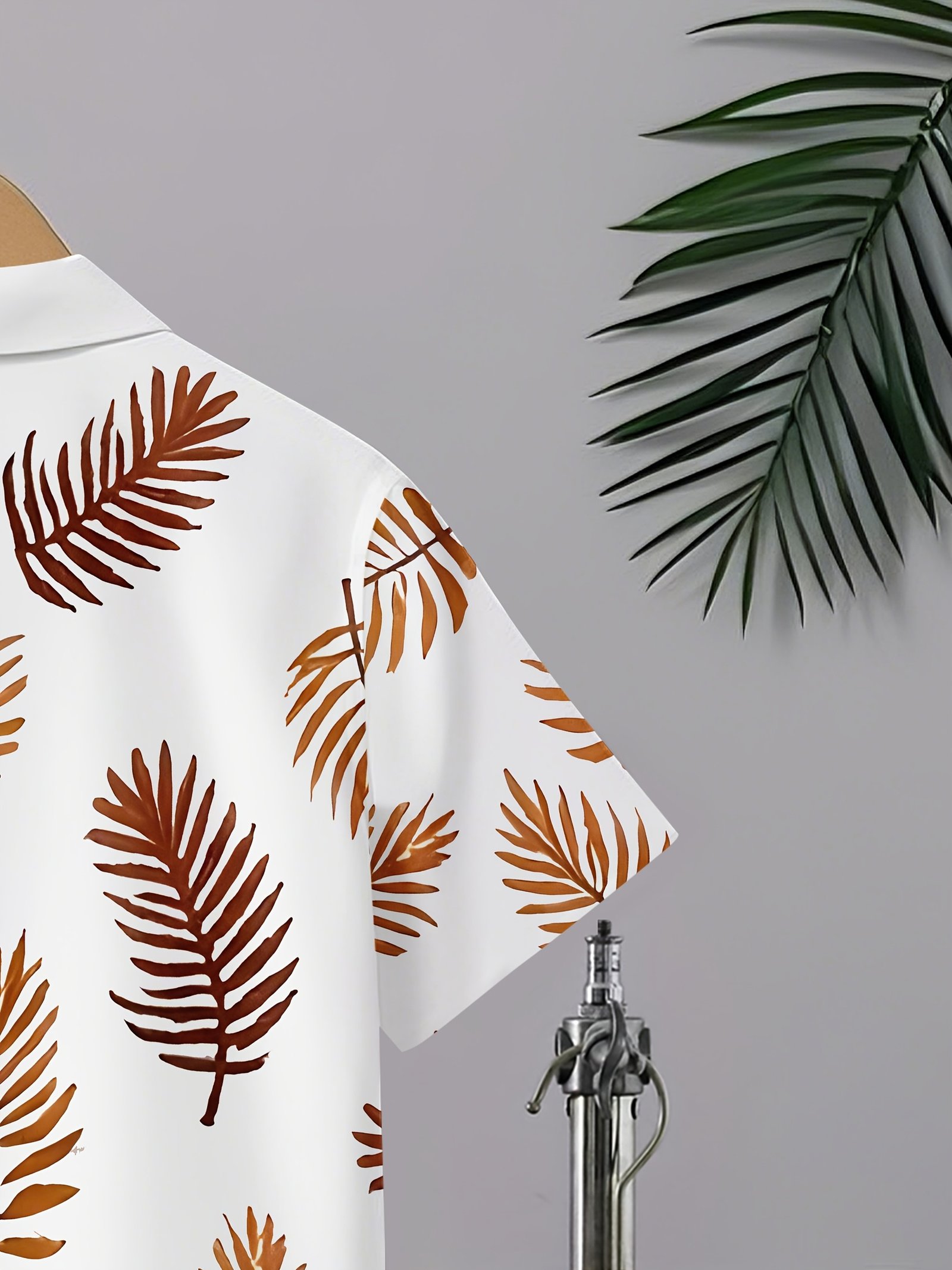 • Charming Summer Design: The shirt features short sleeves, a classic collar, and a 3D palm leaf print that adds a tropical and attractive touch, perfect for a modern and distinctive summer look.