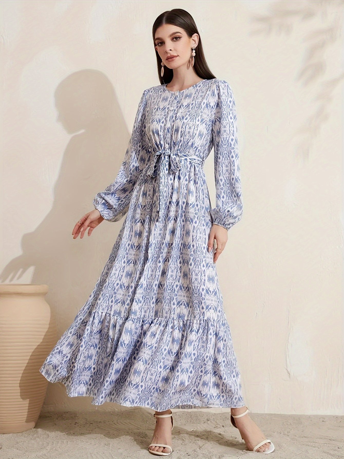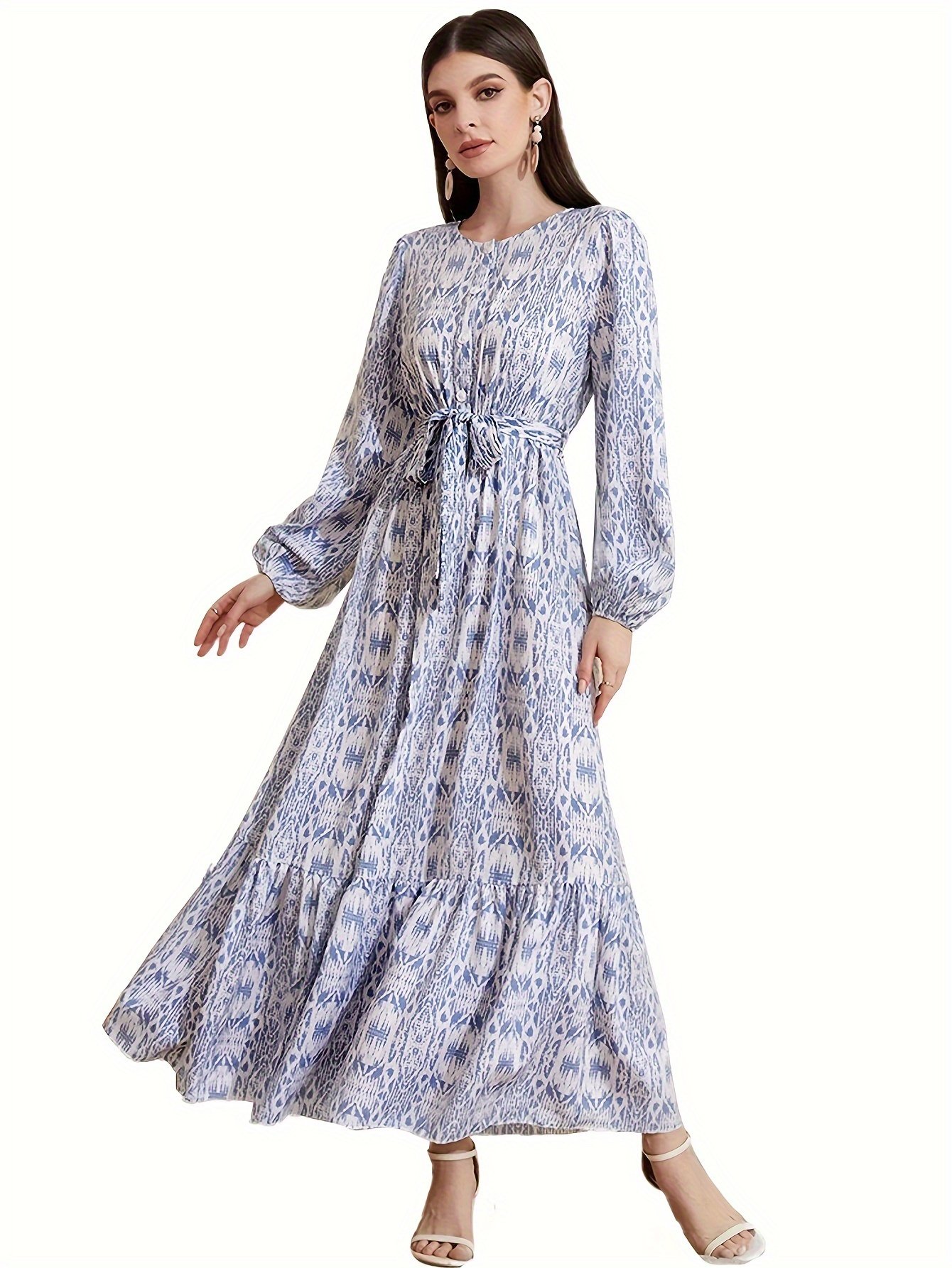 Get ready to shine with unparalleled beauty in our long dress featuring captivating geometric prints. A true masterpiece designed to combine ultimate comfort with sophisticated elegance, making it your perfect choice for spring and autumn looks, and even refreshing summer nights. Let this dress express your unique personality, adding a touch of magic to every step, so you’ll be the center of attention wherever you go.