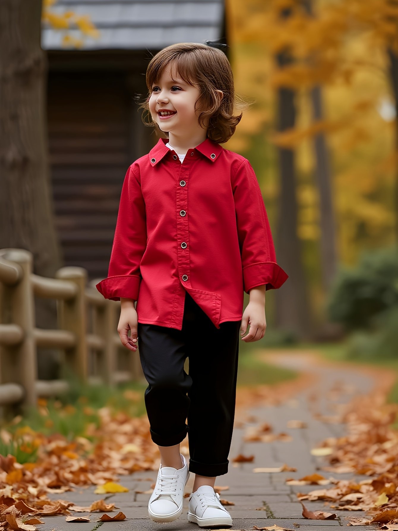 - Details That Enhance Appeal: Features exquisite buttons and a classic lapel collar that add a touch of sophistication and charm, making the shirt easy and comfortable for your child to put on and take off, while providing a smart appearance.