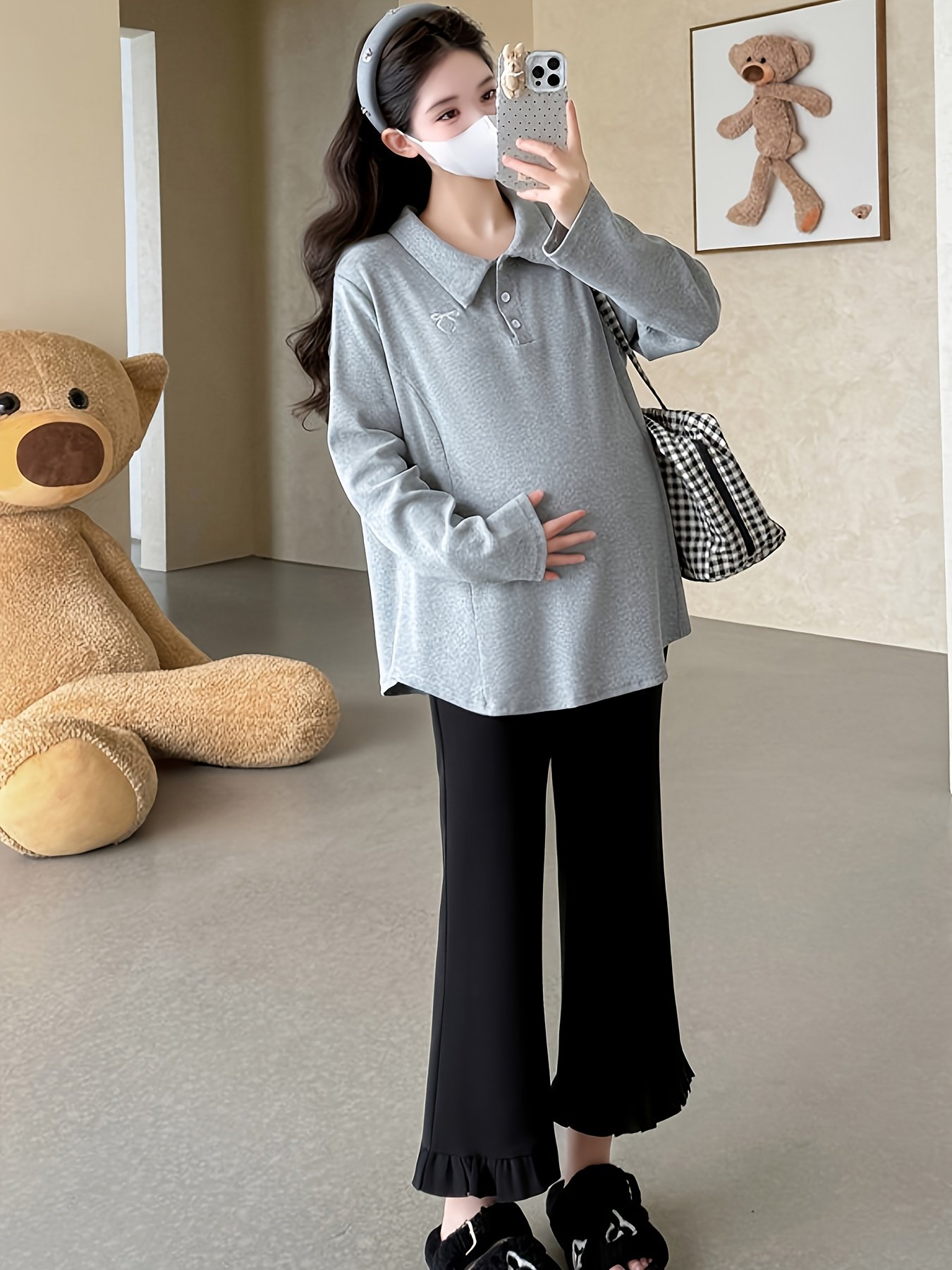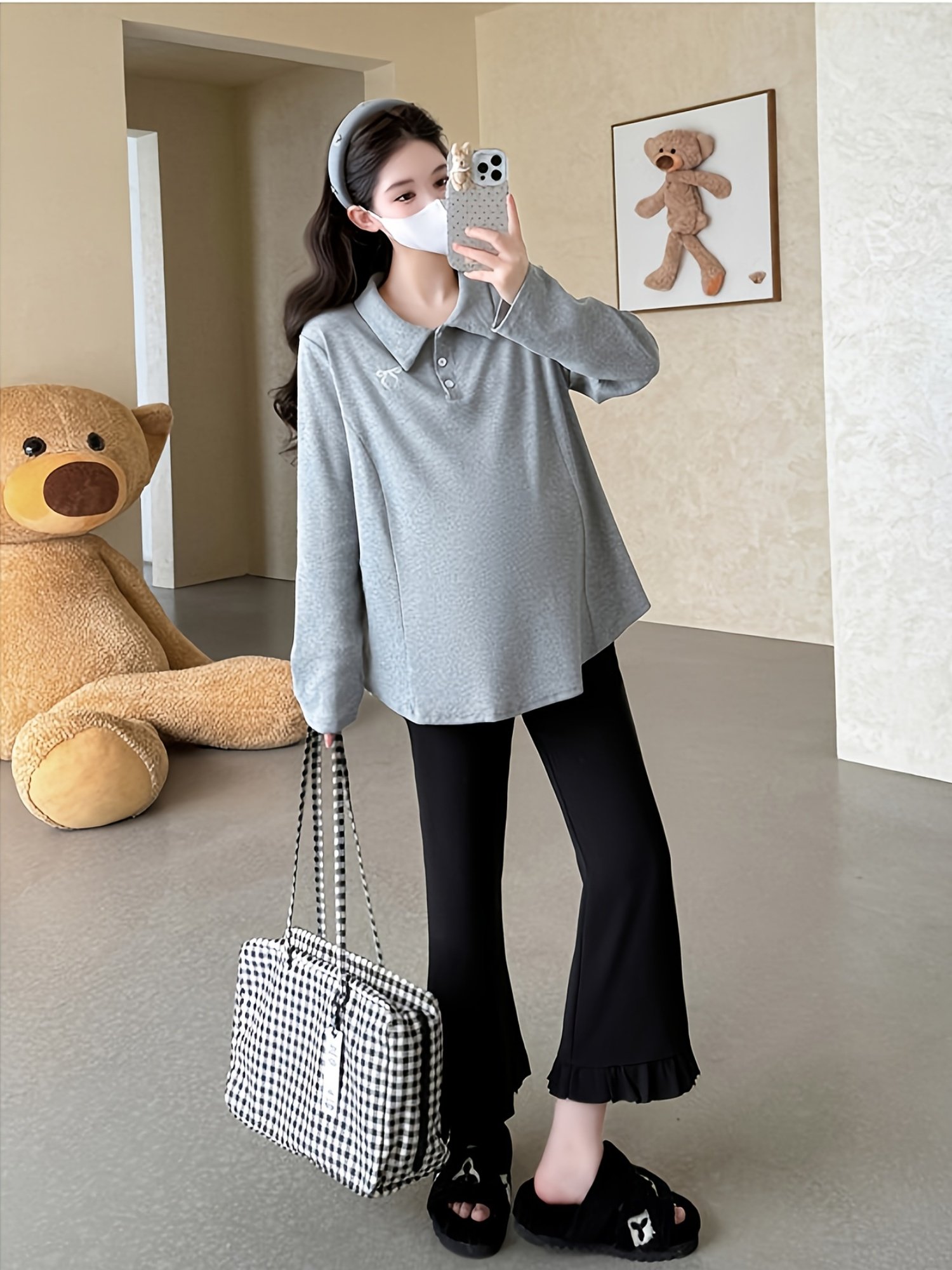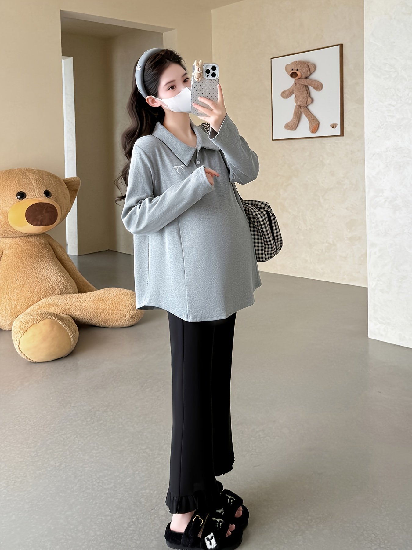 To all future moms seeking ultimate elegance and comfort throughout their incredible pregnancy journey! We introduce the maternity shirt that blends modern design with superior flexibility to adapt to every change in your body, providing you with confidence and charm at all times. Make your pregnancy period more comfortable and stylish with this essential, indispensable piece for your wardrobe.