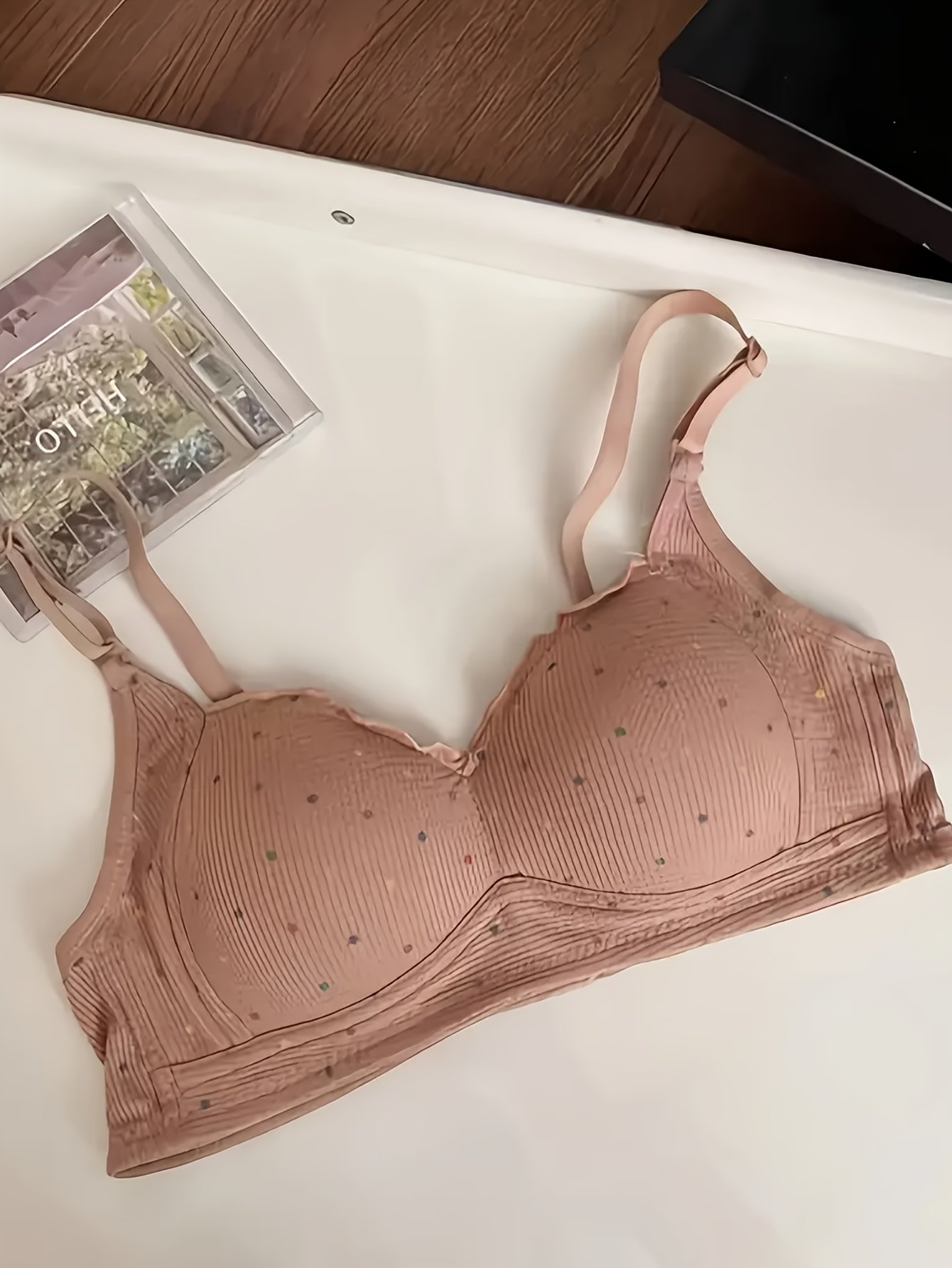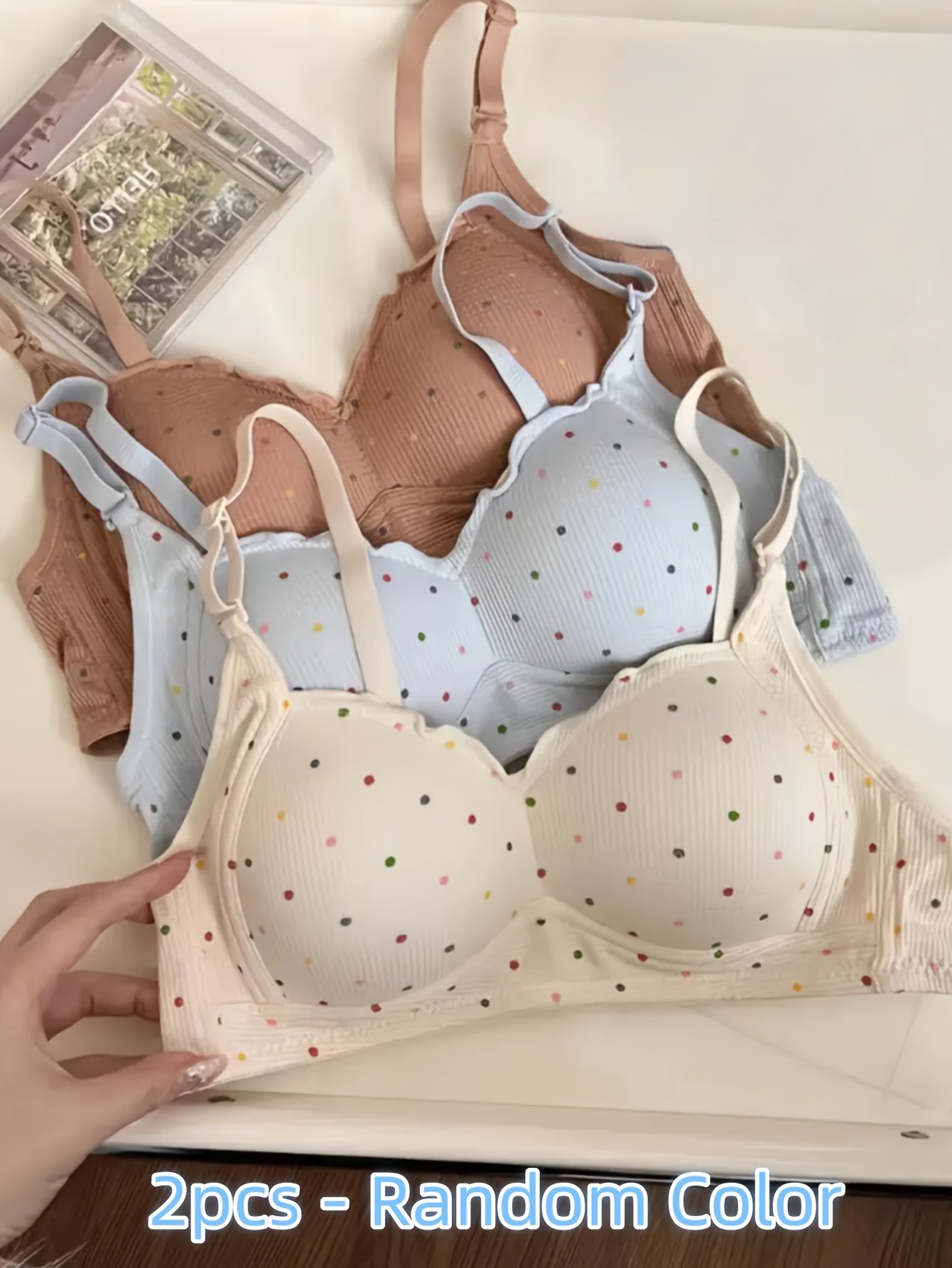 Are you looking for the perfect balance between ultimate comfort and timeless elegance? We present to you your double set of polka dot bralettes, specially designed to give you a feeling of freedom and confidence throughout the day. Let the delightful elegance and playful patterns add a special touch to your daily look, while ensuring the superior comfort you deserve.