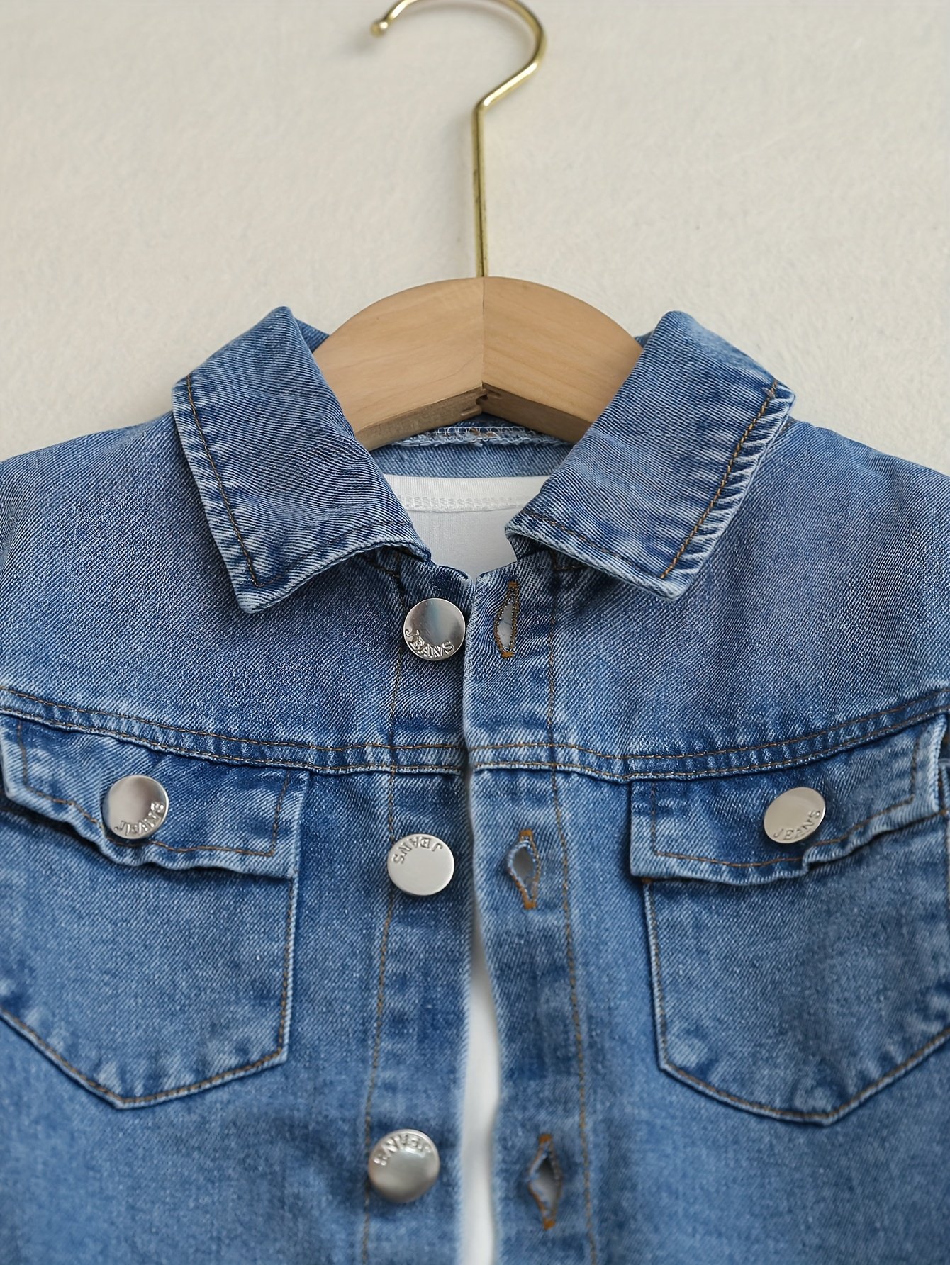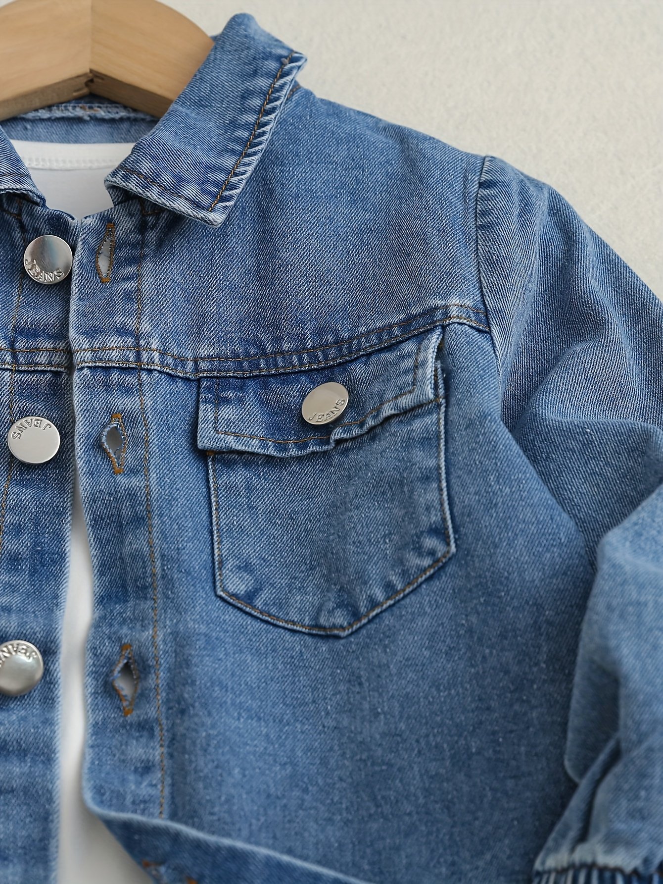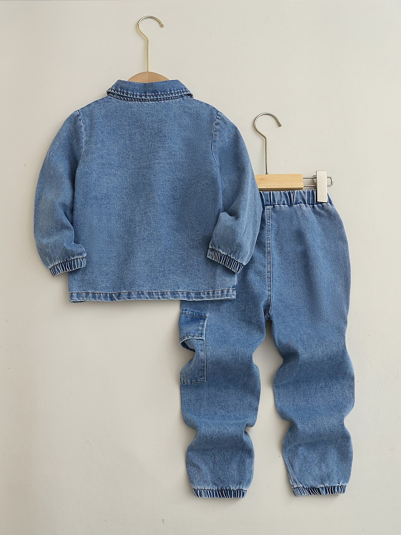 - Functional & Stylish Design: The denim jacket and pants feature practical pockets that add a modern touch and provide space for storing small belongings, all in a solid color design that is easy to coordinate with other items in their wardrobe.