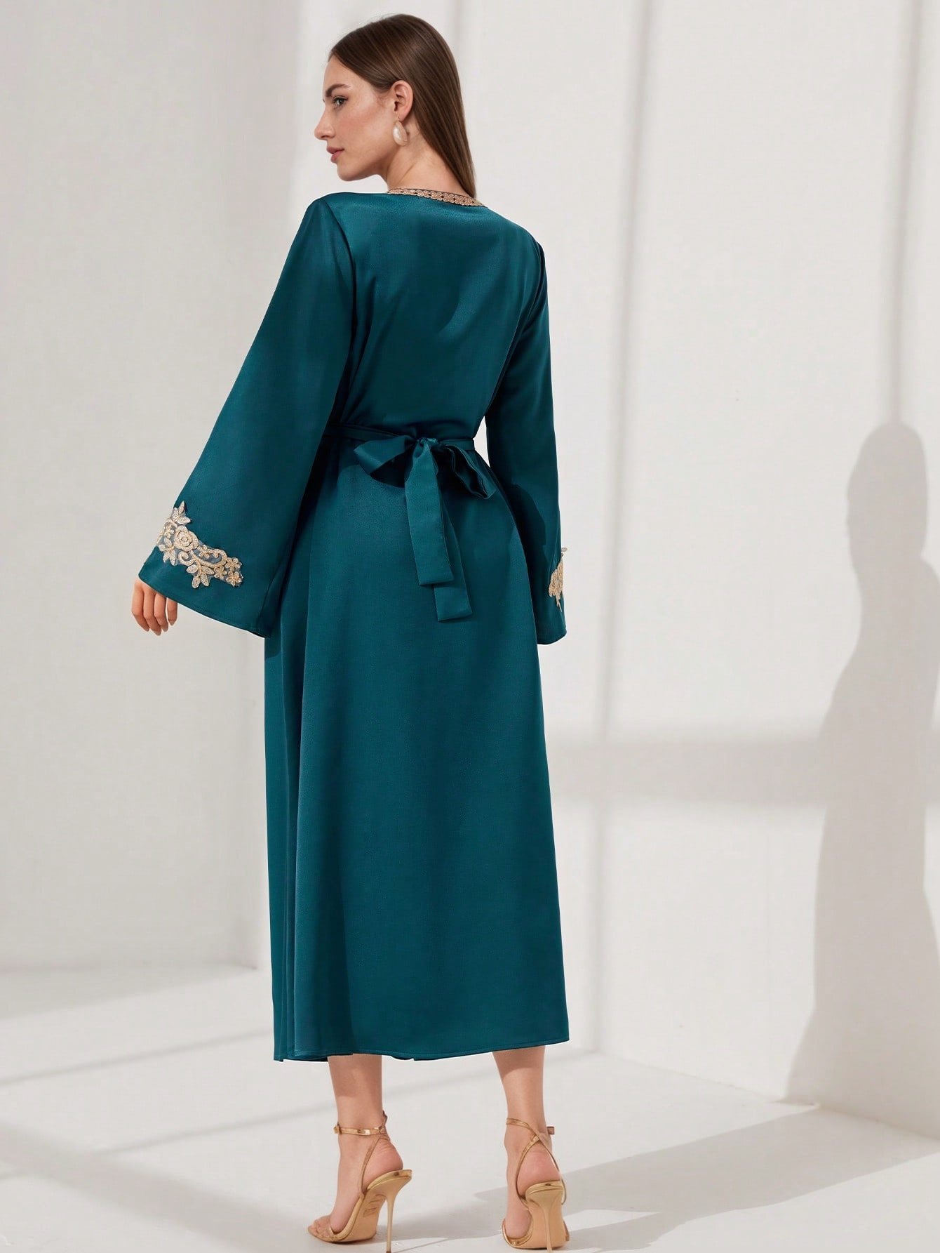 - Flowy, Graceful Silhouette: Designed with a long maxi cut and elegant sleeves, the dress drapes smoothly to give you comfort and freedom of movement, with a matching waist belt that elegantly highlights your figure.
