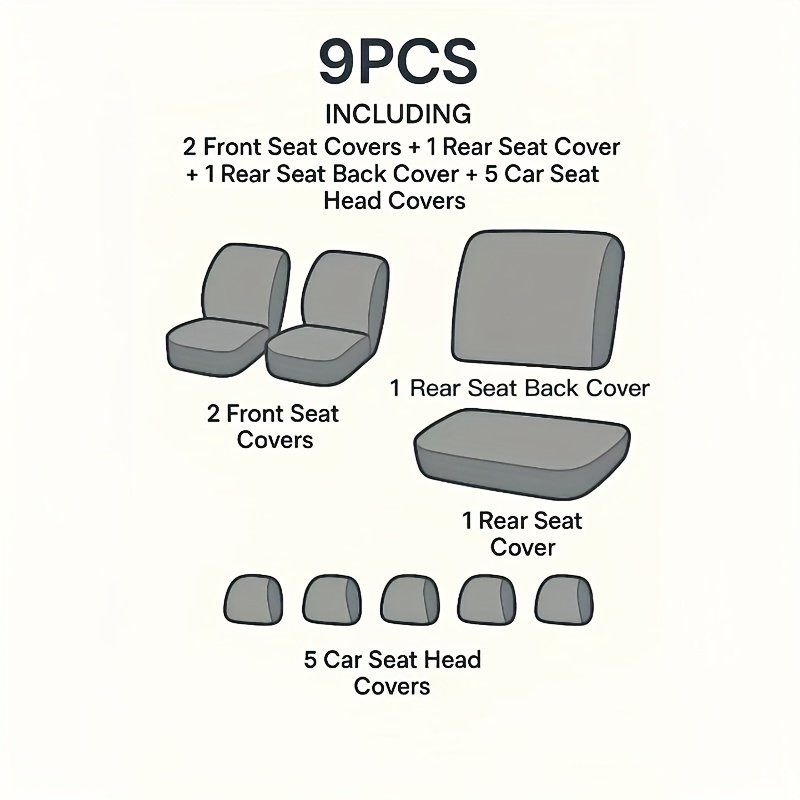 - Integrated and Comprehensive Protection Set: The set includes 9 pieces to fully cover all your car’s front and rear seats, ensuring comprehensive protection and preserving your car’s interior value.