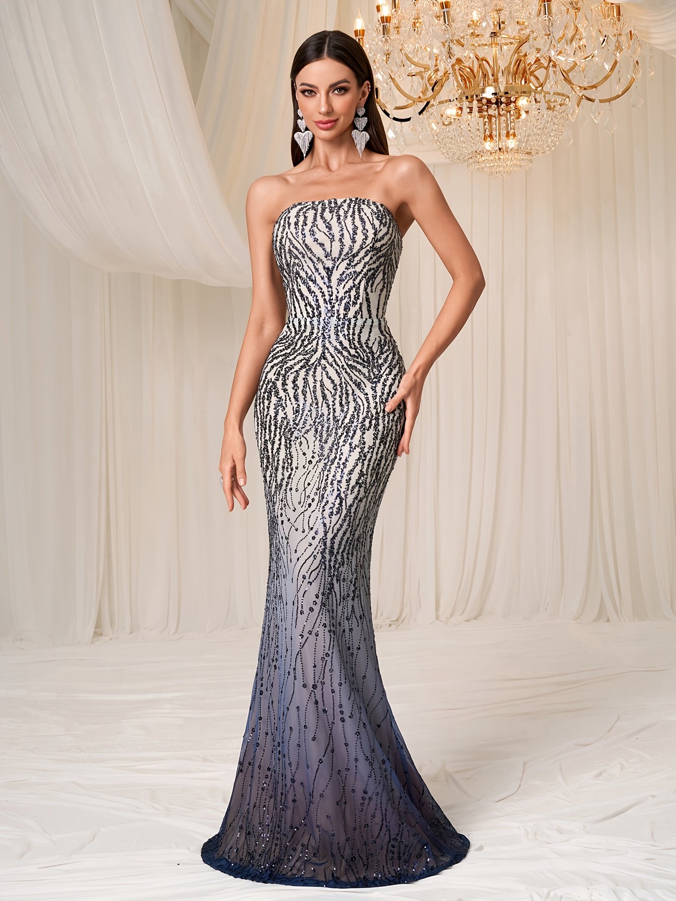 - Dazzling Ombre with Shimmering Sequins: Combines the magic of sparkling sequins with trendy color gradients (Ombre) to give you a glittering, luxurious look that moves with you and captivates all eyes, featuring contrasting sequin details that add depth to the design.