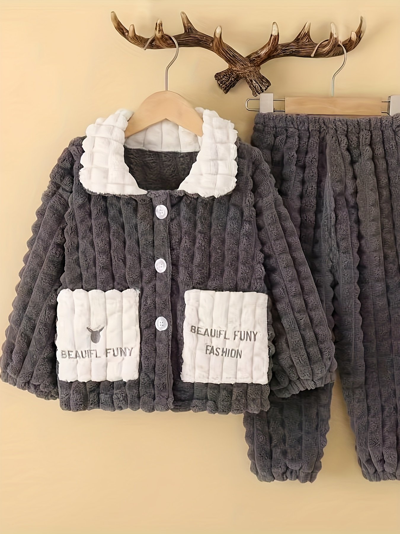 - Modern and Practical Design: An elegant two-piece set featuring a classic lapel collar and practical buttons, with useful side pockets for storing your child’s small treasures. The casual design and alphabet prints add a touch of modern elegance and fun.