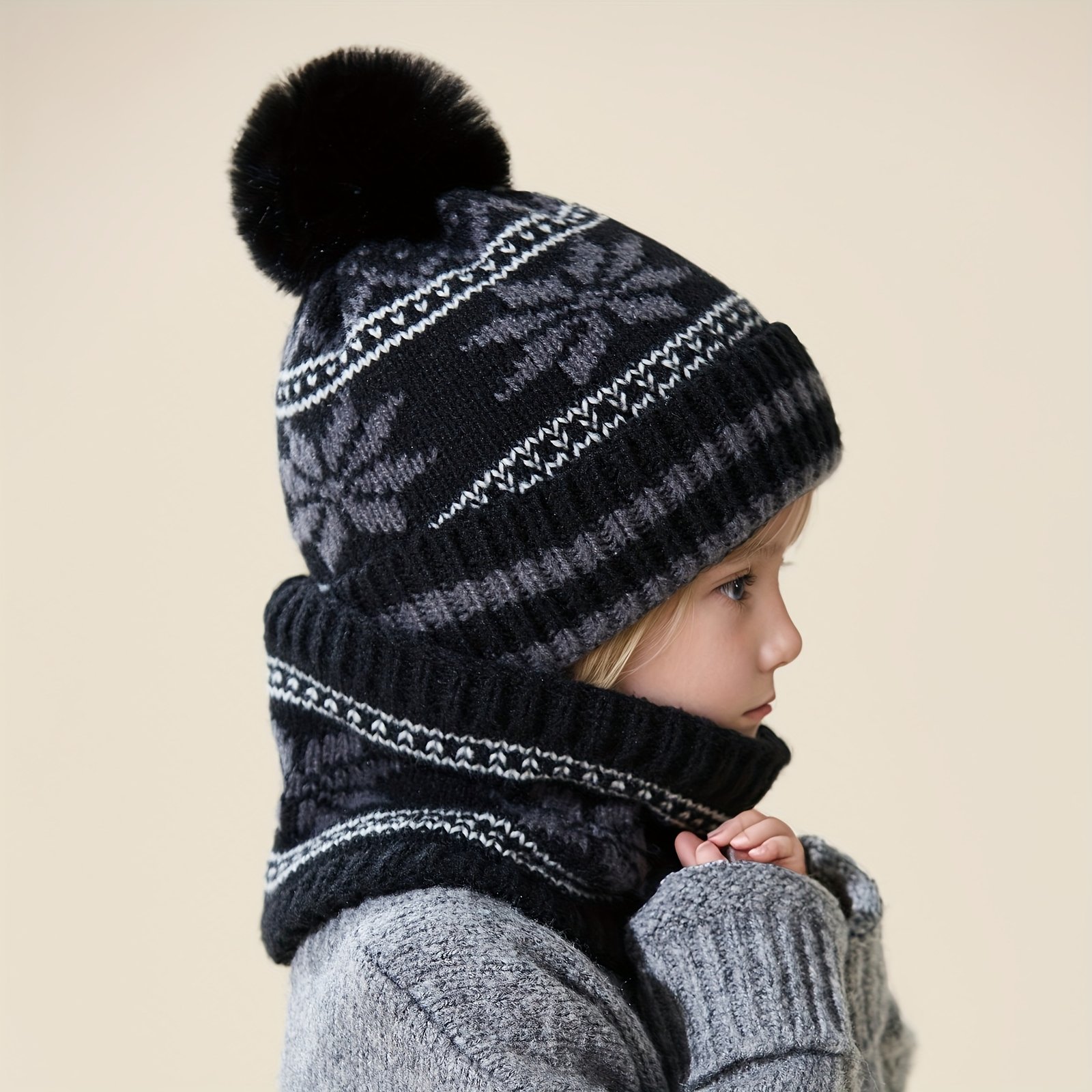 - Comprehensive Protection: A snowflake-designed scarf protects the ears and neck from cold and wind, keeping your child warm in the harshest weather conditions.