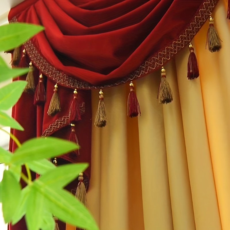 Do you dream of transforming your living space into a haven of luxurious elegance and ultimate comfort? We present our precisely designed, thick velvet curtains, combining opulent fabric with a modern touch of coordinated colors. Featuring a design that blends the captivating charm of warm red and sophisticated beige, these curtains are more than just a decorative addition; they are an embodiment of refined taste and the comfort you truly deserve.
